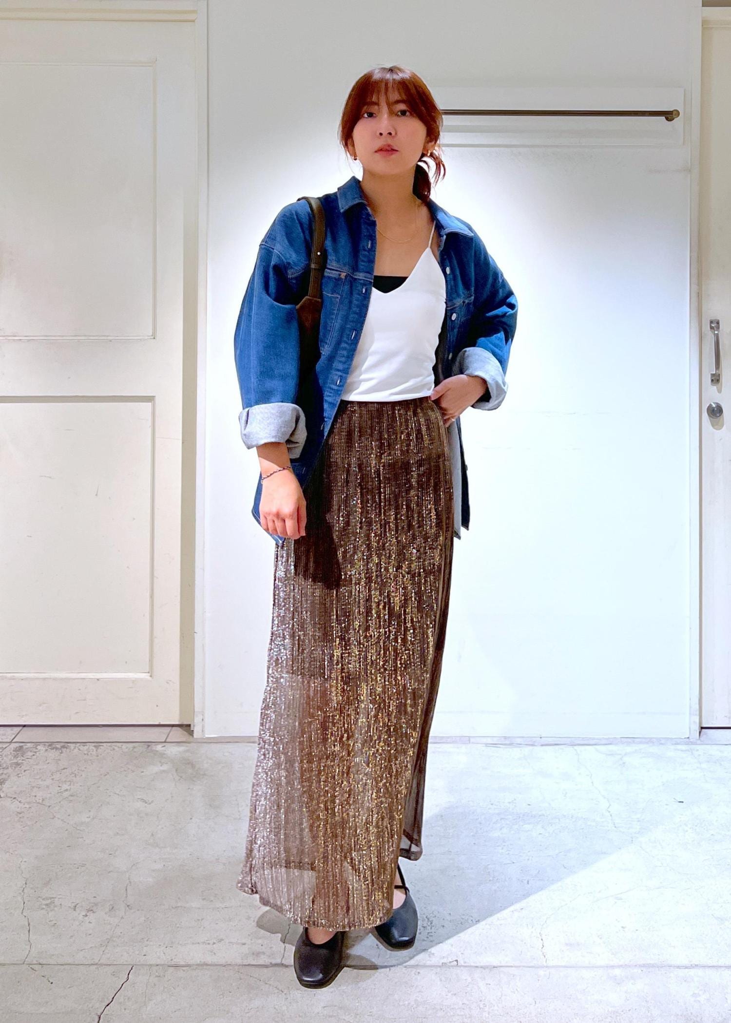 ラメが散りばめられたコーディネートのアクセントになりそうなスカート。 -