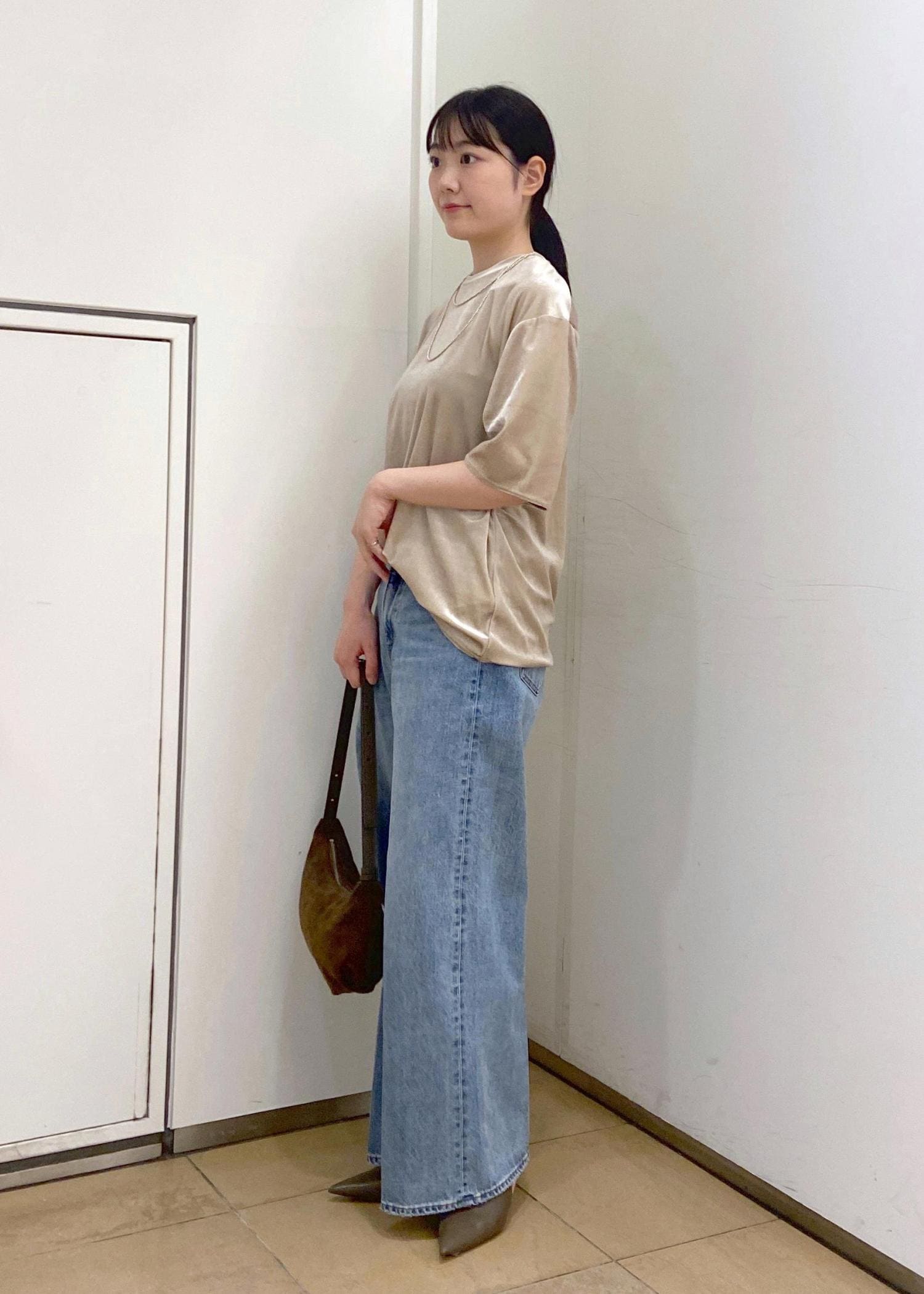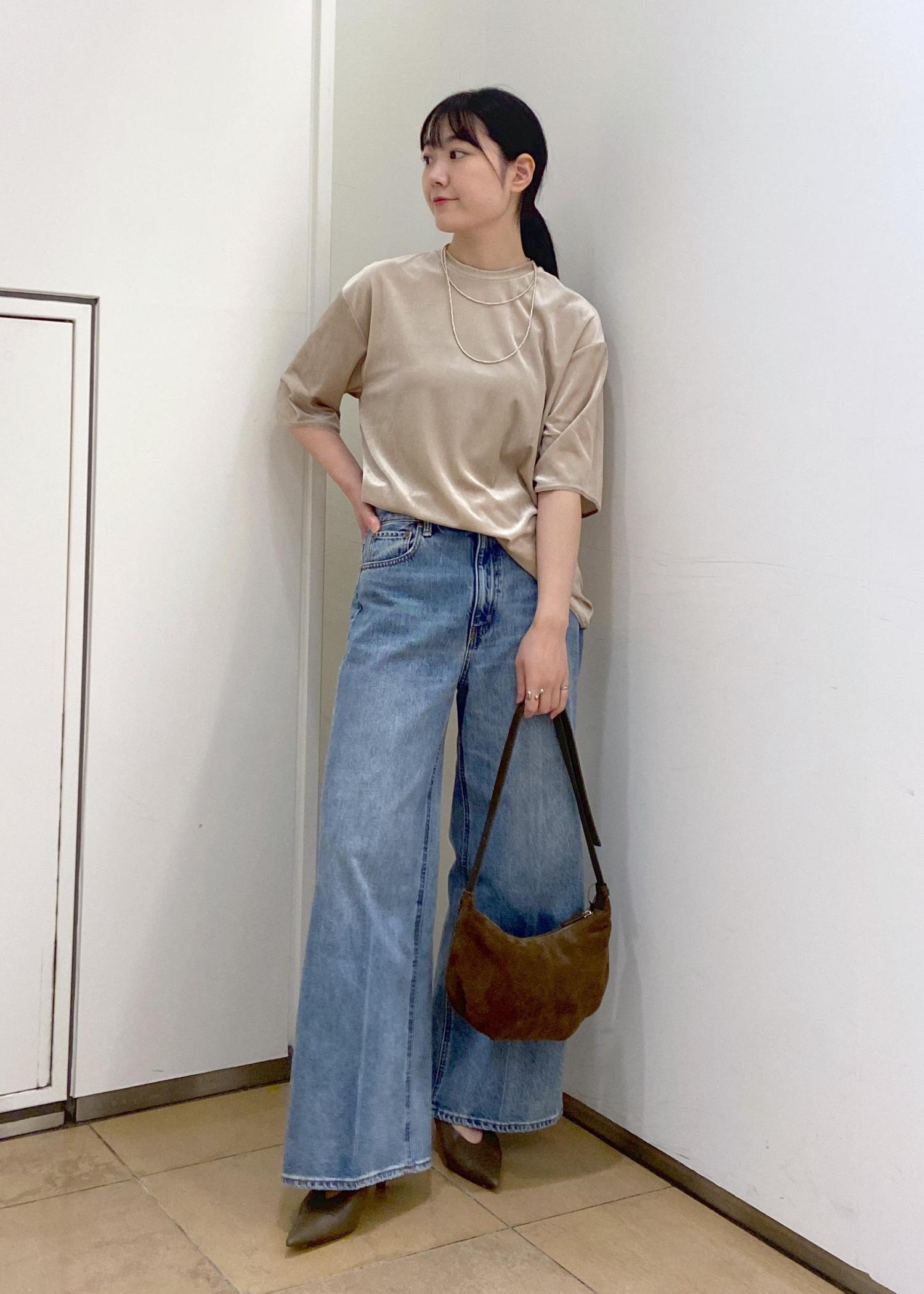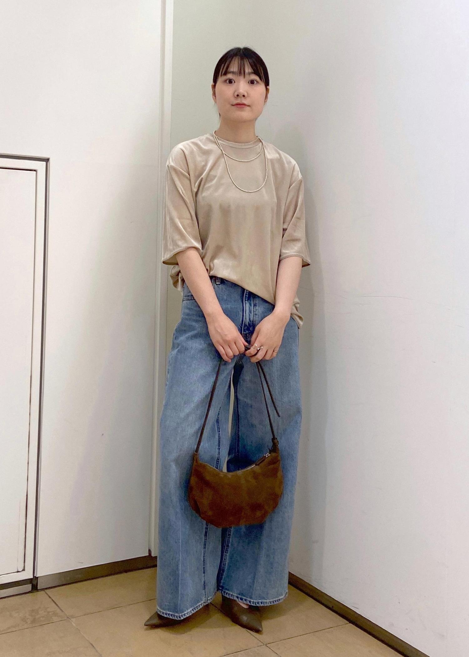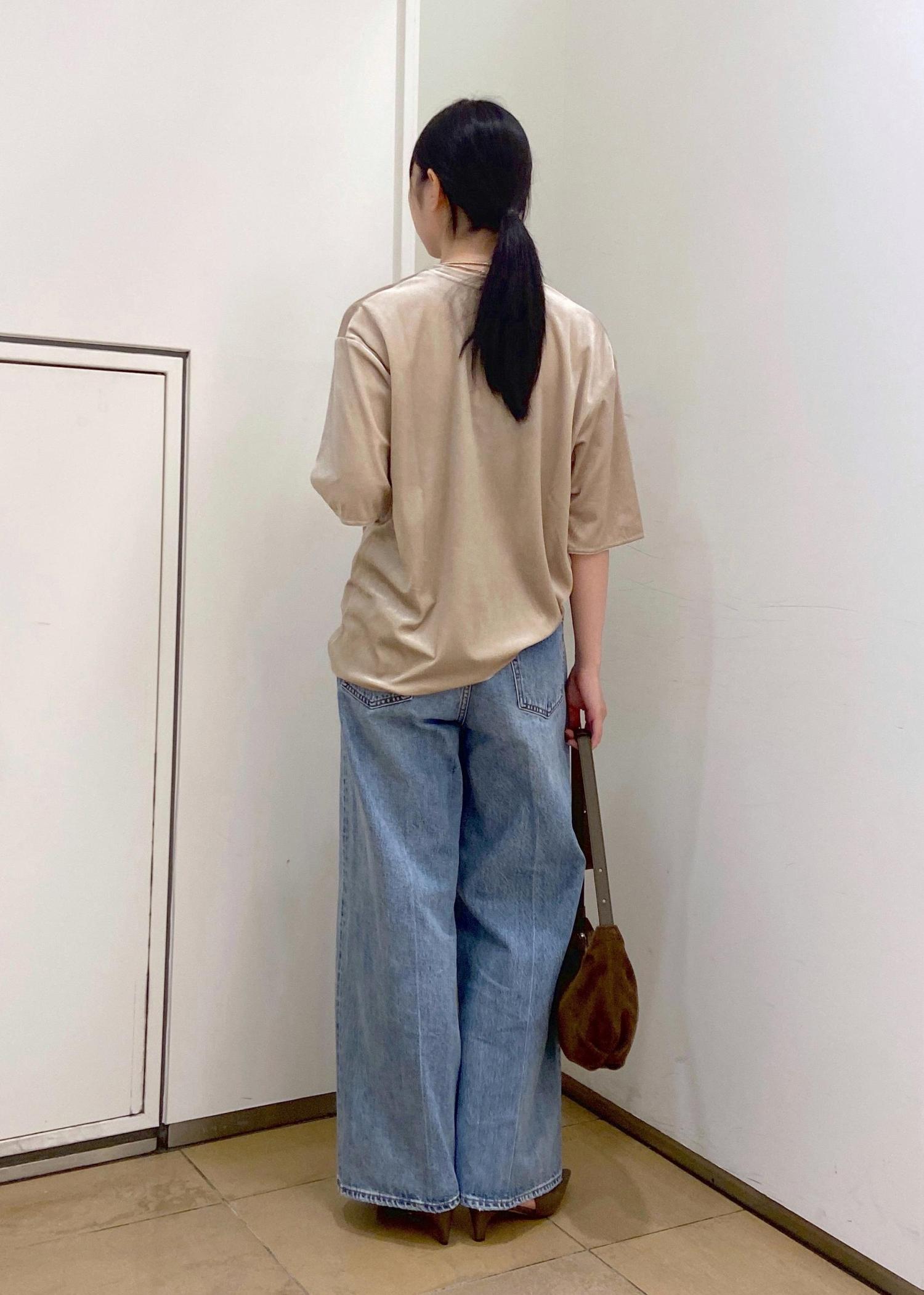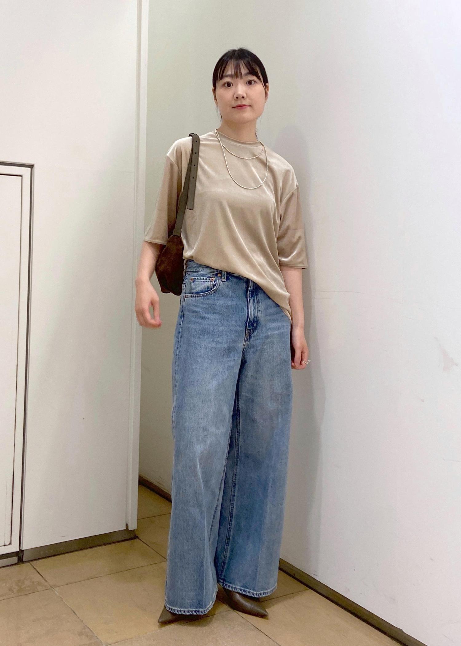 ウエストはややゆるく、ウエストを落として履くと今年らしいスタイルに。