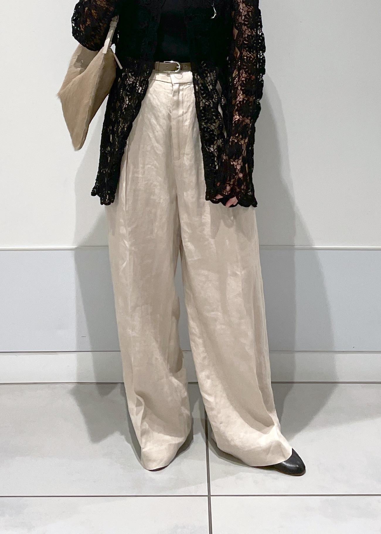 SALON adam et ropéリネンツイルタックパンツベージュ / S¥18,480レビュー普段Sサイズ着用で、こちらはウエストがかなりゆったりめ。