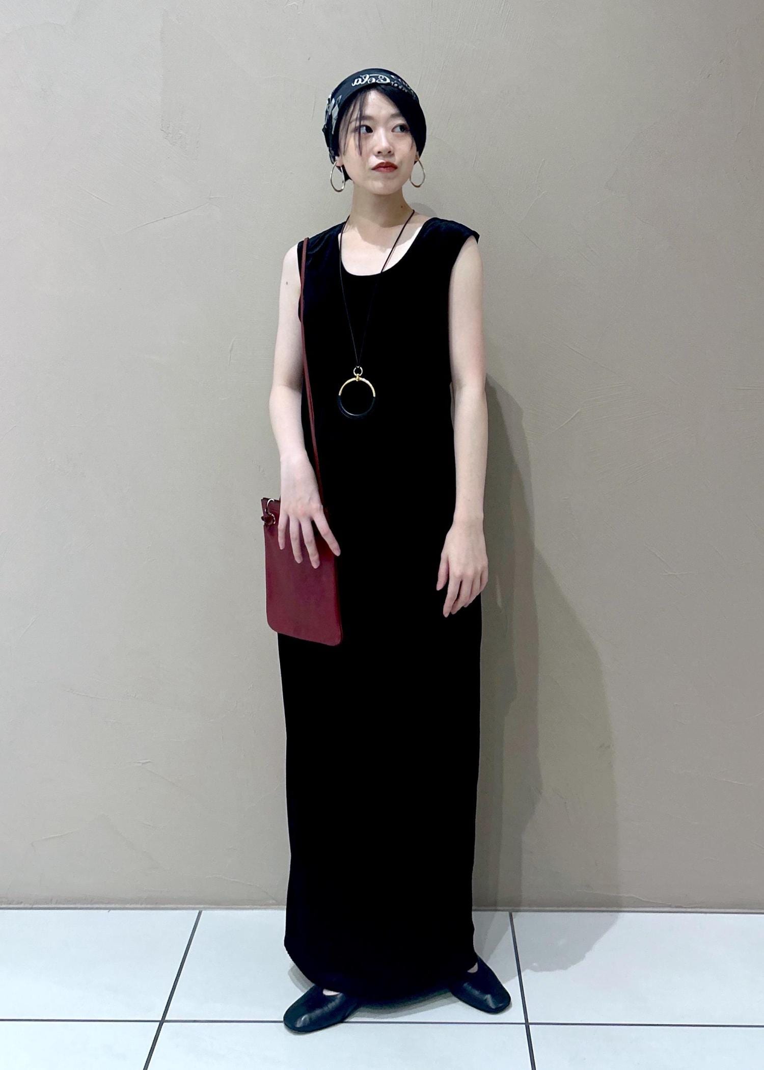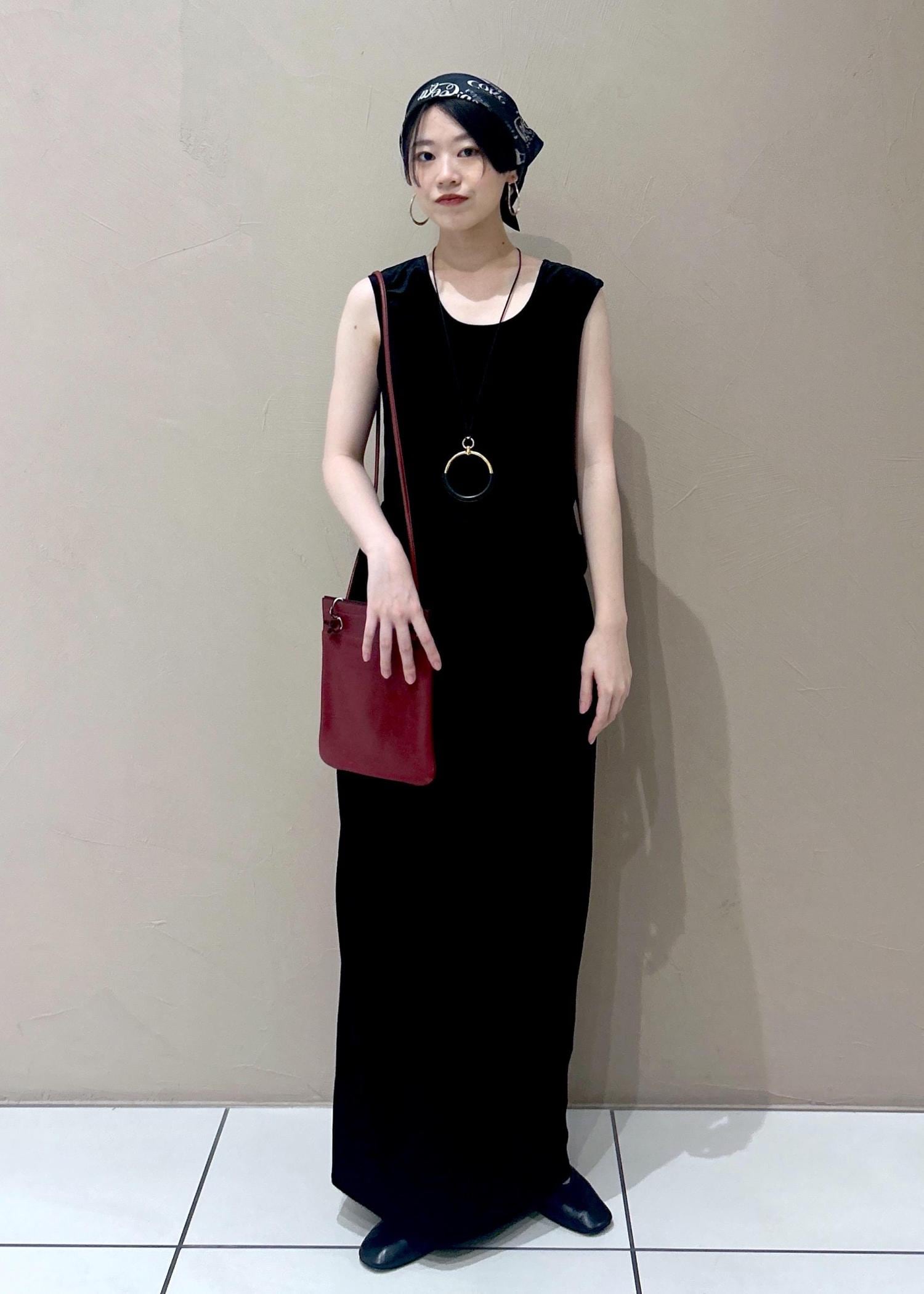ベロアは一見秋の素材に見えますが、裏地がさらりとしており、ノースリーブであれば今の時期でも涼しく着用頂けます♪