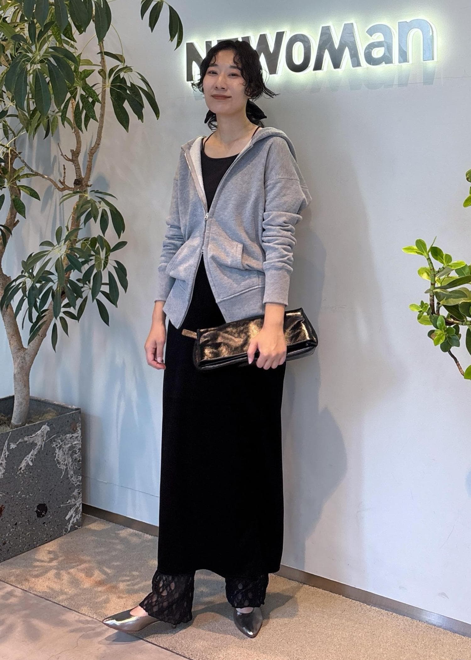 パーカーだけれど女性らしいシルエットなのでレースなどのアイテムとも相性◎
