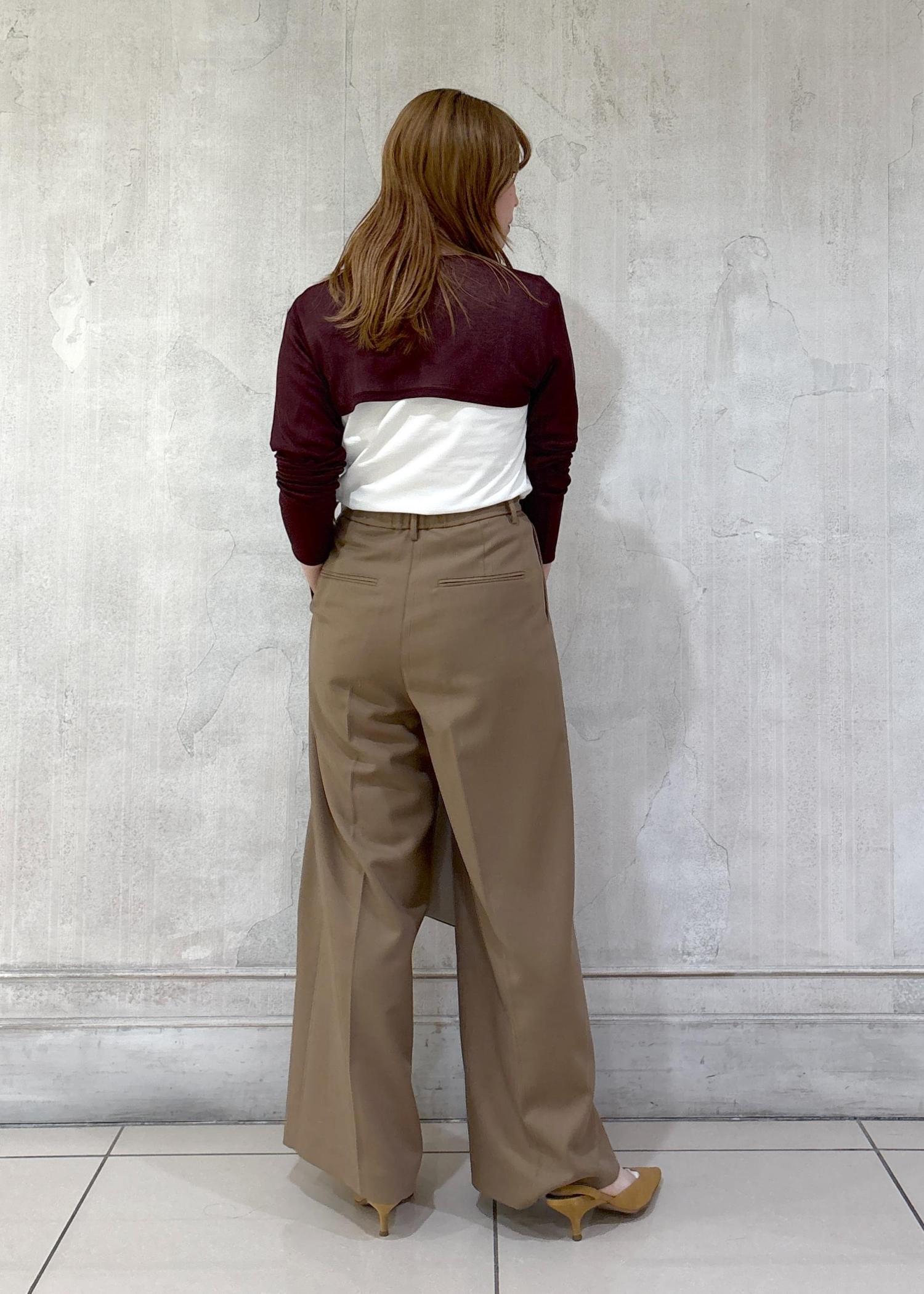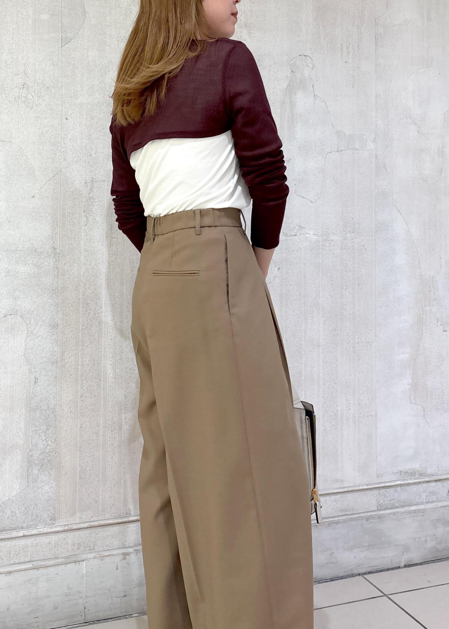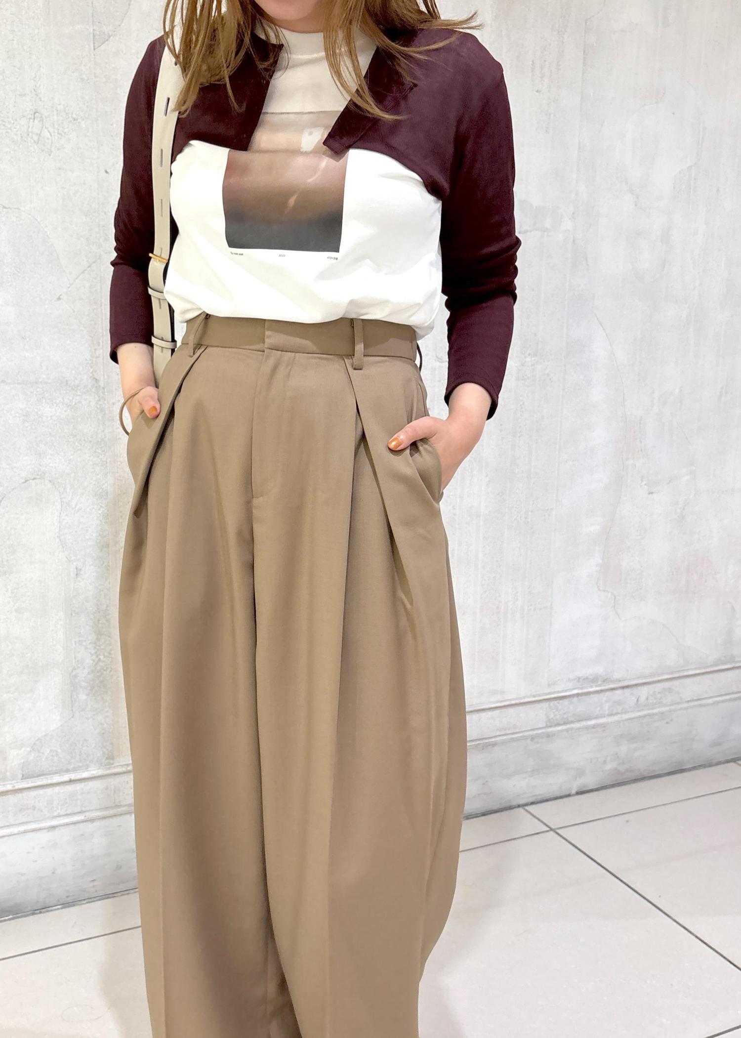 SALON adam et ropéインバーテッドタックパンツ/スラックスベージュ / M¥25,300レビュージャストサイズで36、ゆるっと着用したかったら38がオススメです!ウールが入っているので、気持ちチクチクする感じはありますが、ペチコート履けば気にならない程度でした。