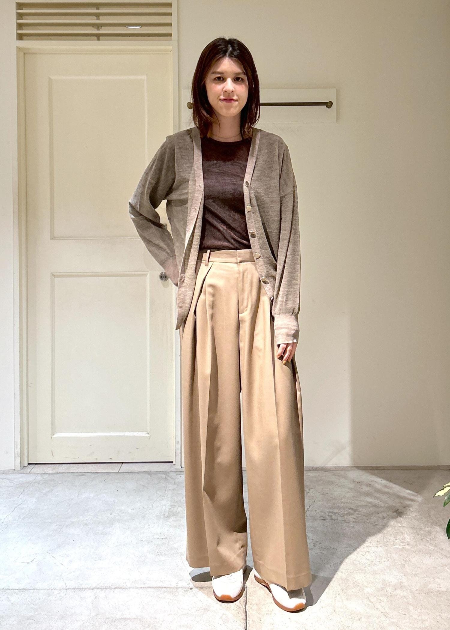 アウトレットSALON adam et ropéウール混シアークレープVネックカーディガンベージュ / F¥15,840レビュー[サイズ感]