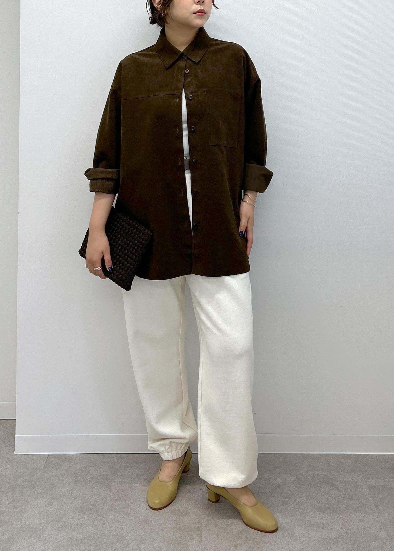 SALON adam et ropéUltrasuede(R)オーバーシャツ / セットアップ対応ブラウン / F¥49,500レビュー着丈は長めでおしりが隠れる丈感です。