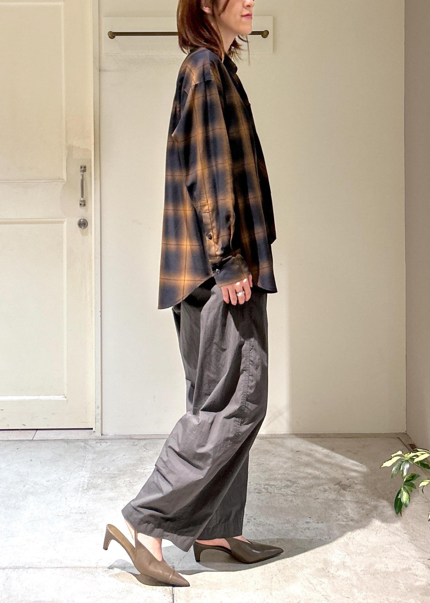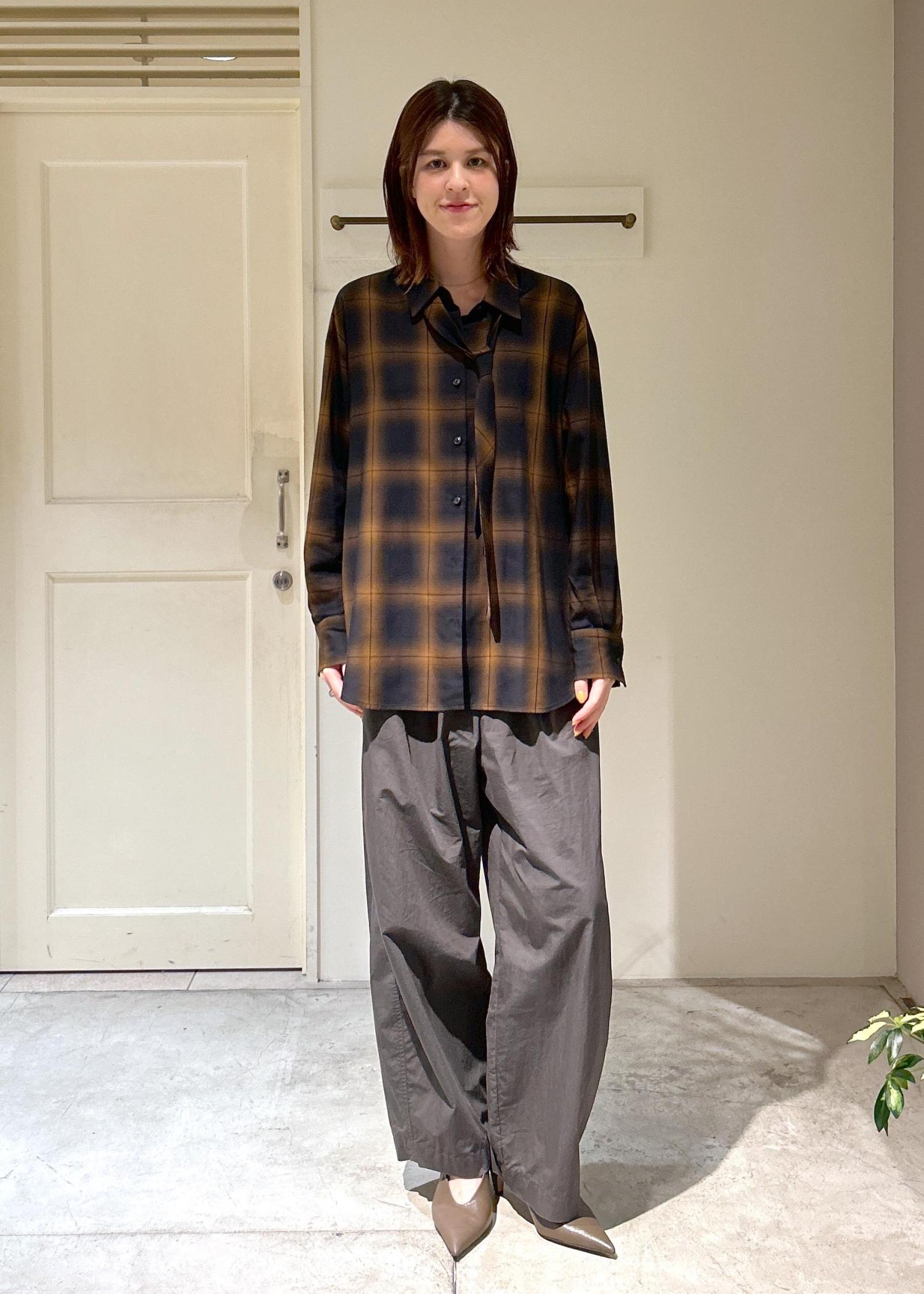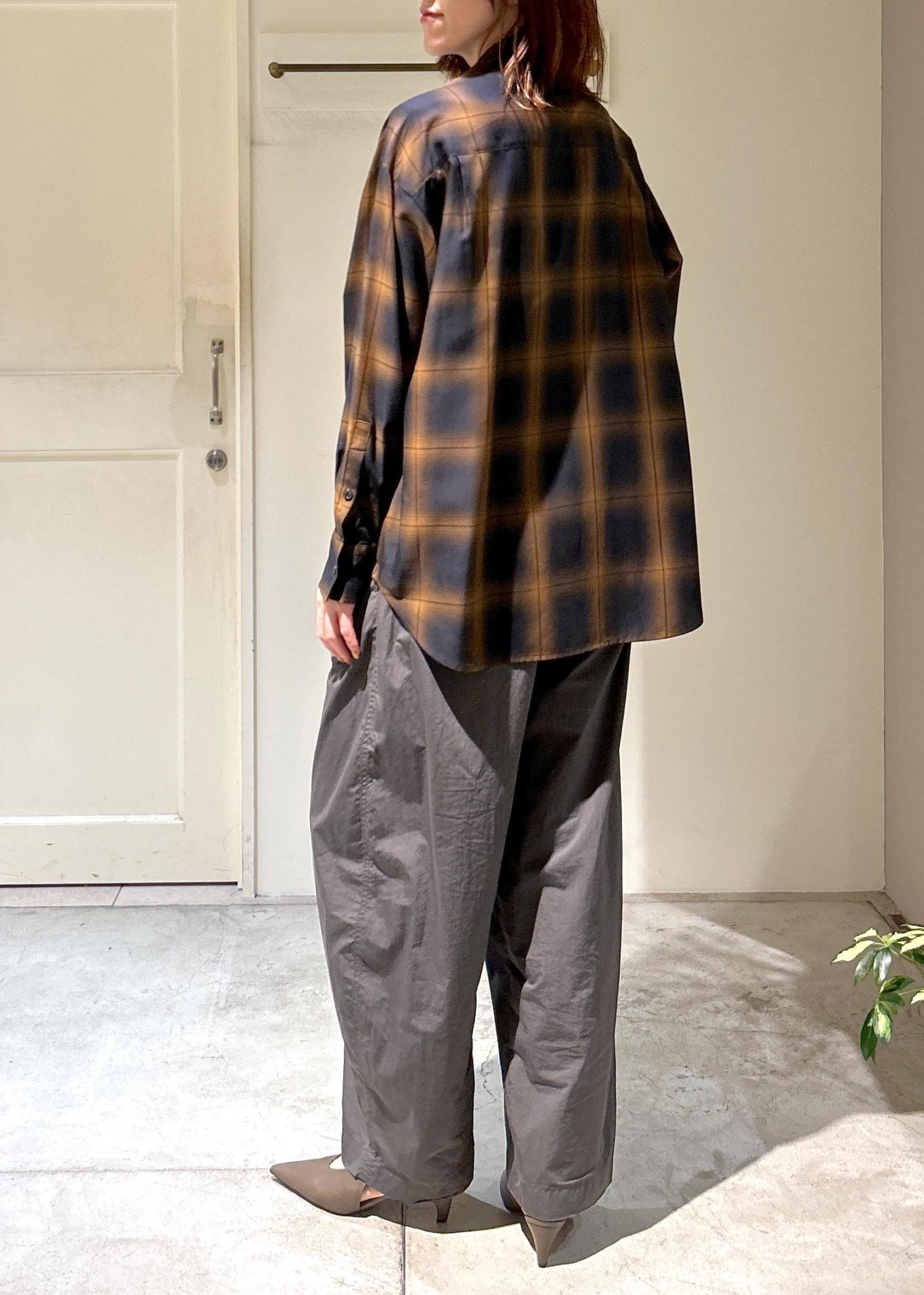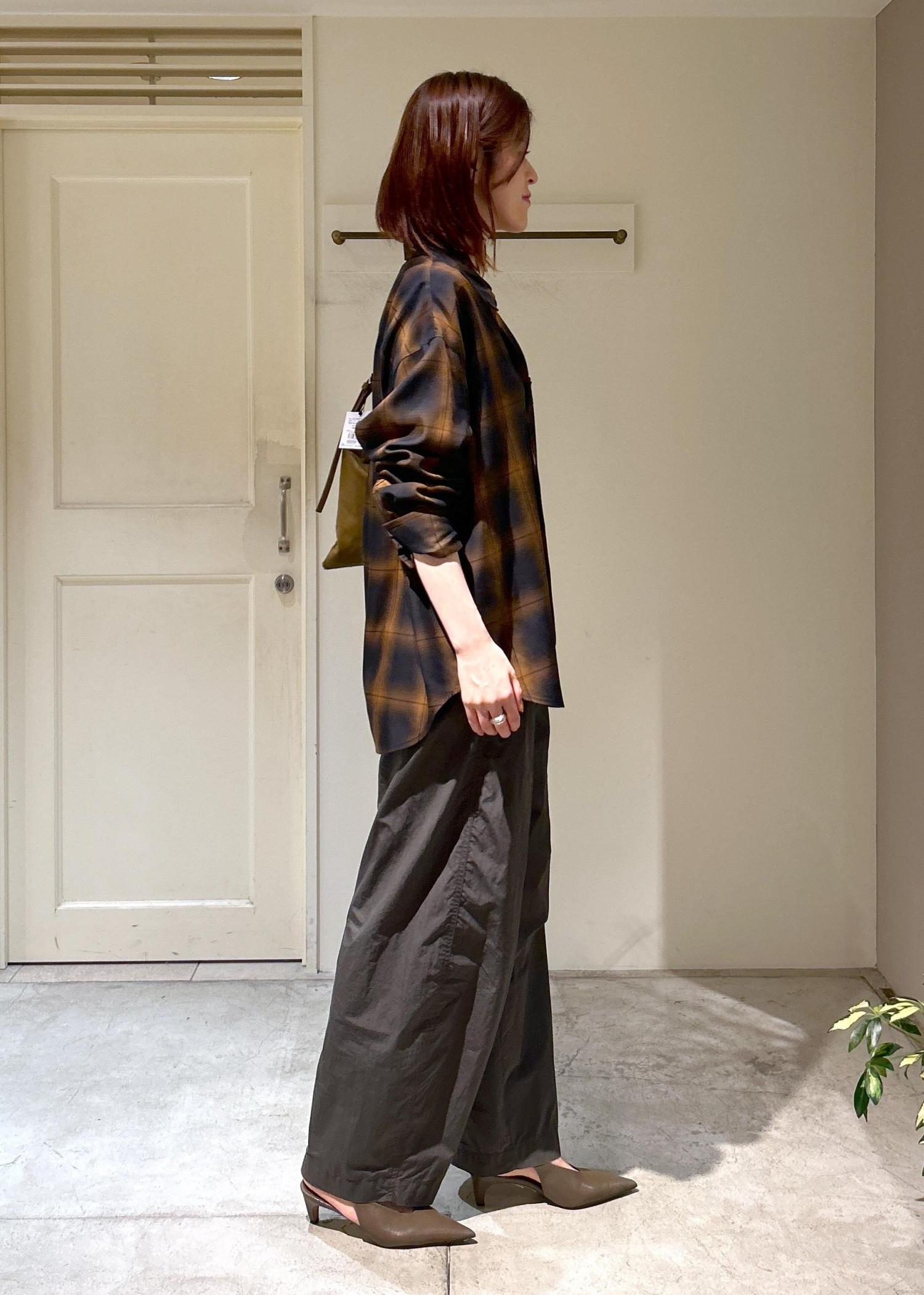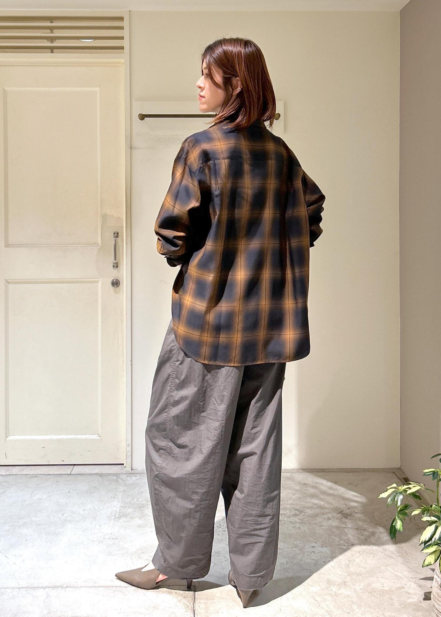 大きめの柄とカラーで秋らしさを取り入れられる、大人のチェックシャツです。