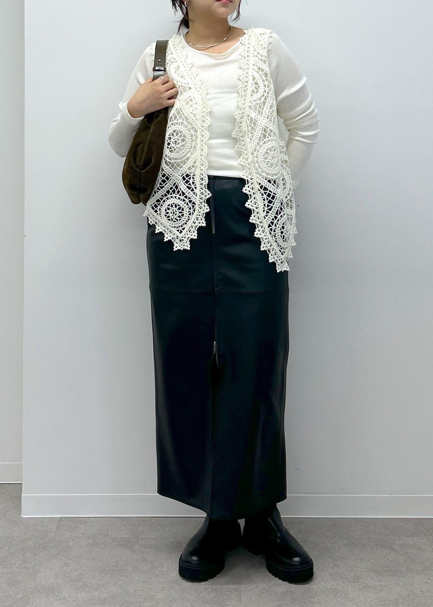 SALON adam et ropéエンブロイダリーレースジレオフホワイト / F¥23,100レビュー着丈は短めなのでスッキリとした印象で着用いただけます。