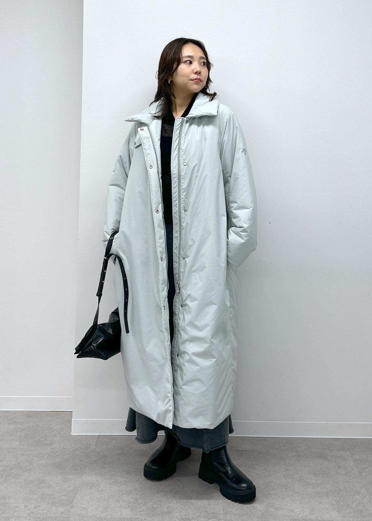 SALON adam et ropé【DESCENTE ALLTERRAIN(デサントオルテライン)】別注ステンカラーパフコートライトグレー / F¥69,300レビュー丈感は長めで身長158cmでくるぶしやや上くらいまでのながさです。