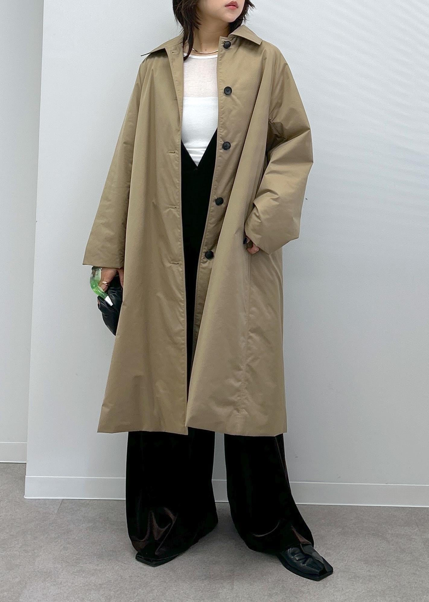 SALON adam et ropéFURLO DOWNバルマカンコート / 撥水ファーロダウンベージュ / F¥64,900レビュー着丈はやや長めで158cmでくるぶし上くらいの丈感です。身幅はゆったりめなのでニットなども中に着込めるサイズ感です。