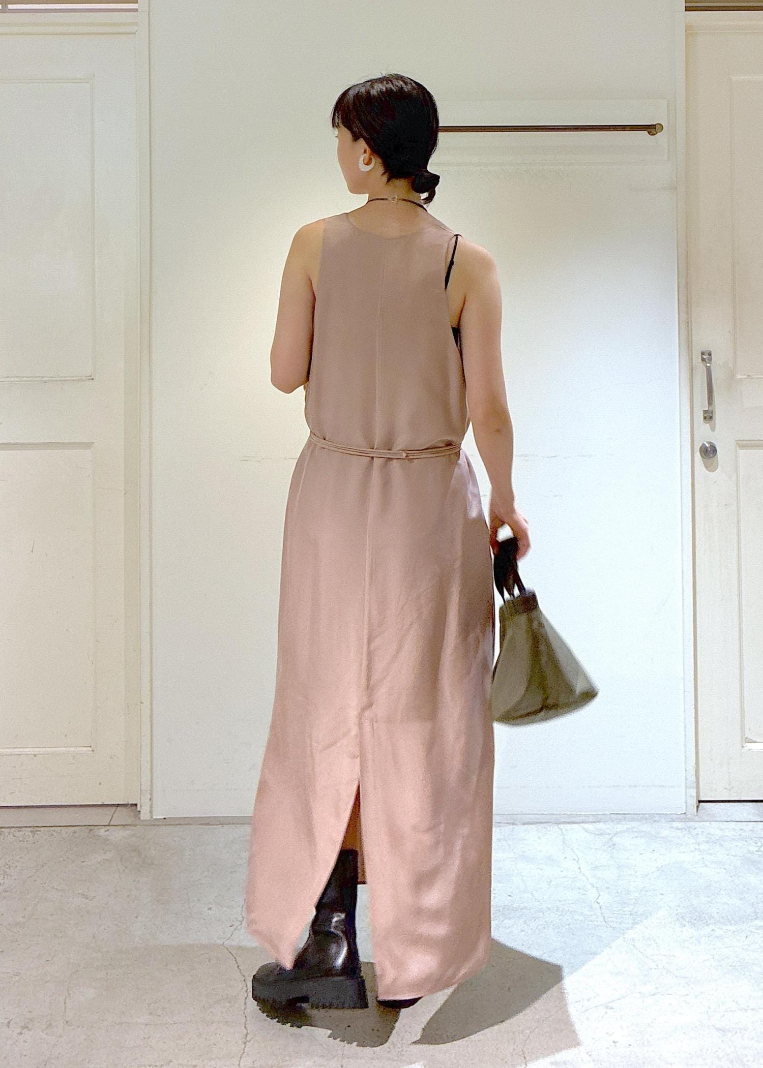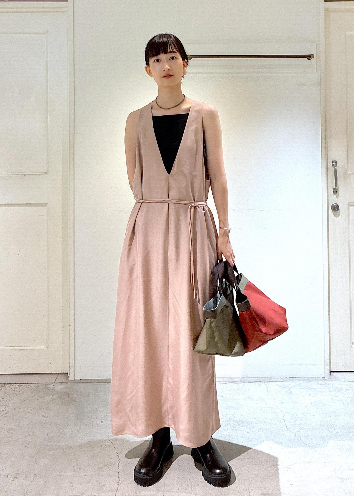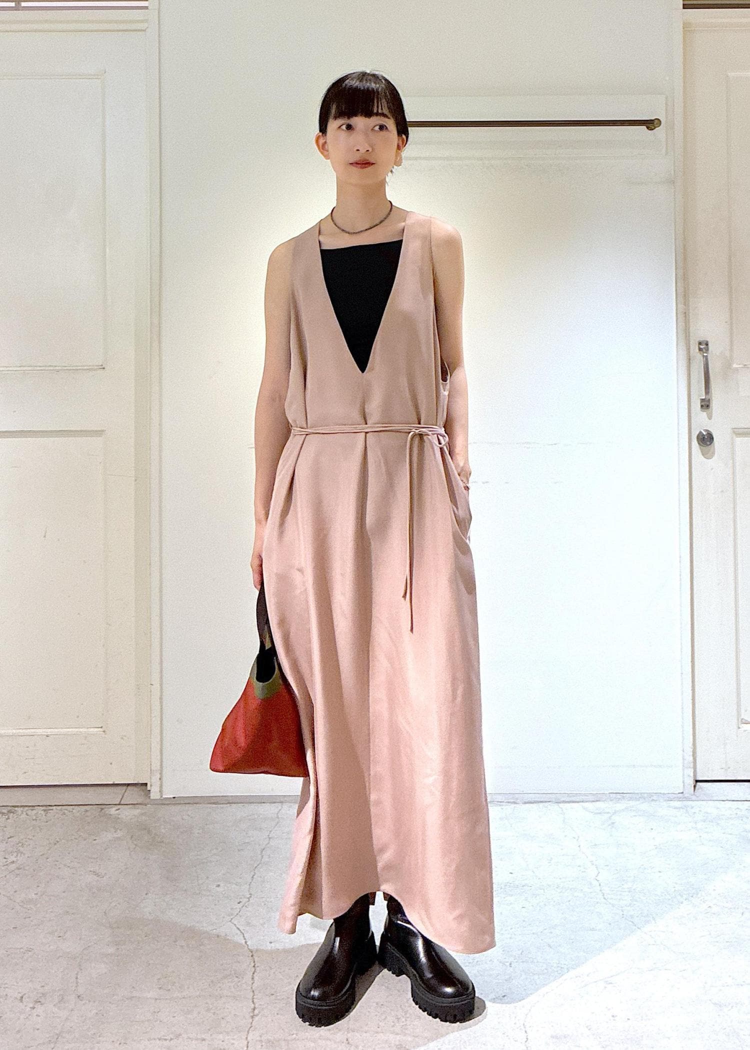 gentle silkのワンピースは深いVネックが潔くて素敵。