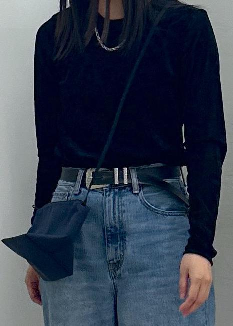 SALON adam et ropéシアーベロアロンTブラック / F¥9,900レビューベロア素材でメッシュになっているので透け感もあり涼しく着れます。