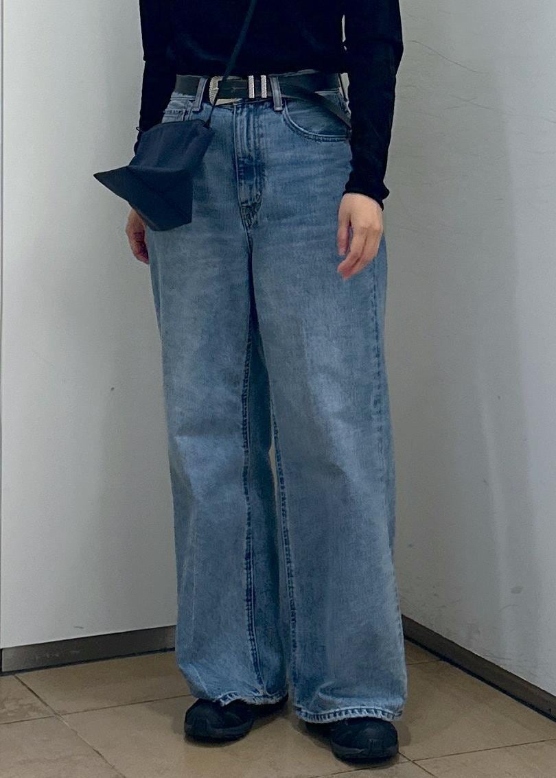 SALON adam et ropéUSAコットンセンタープレスバギーデニム[セットアップ対応]サックス / S¥19,800レビューSサイズでウエストは大きいのでベルトで調節してます。