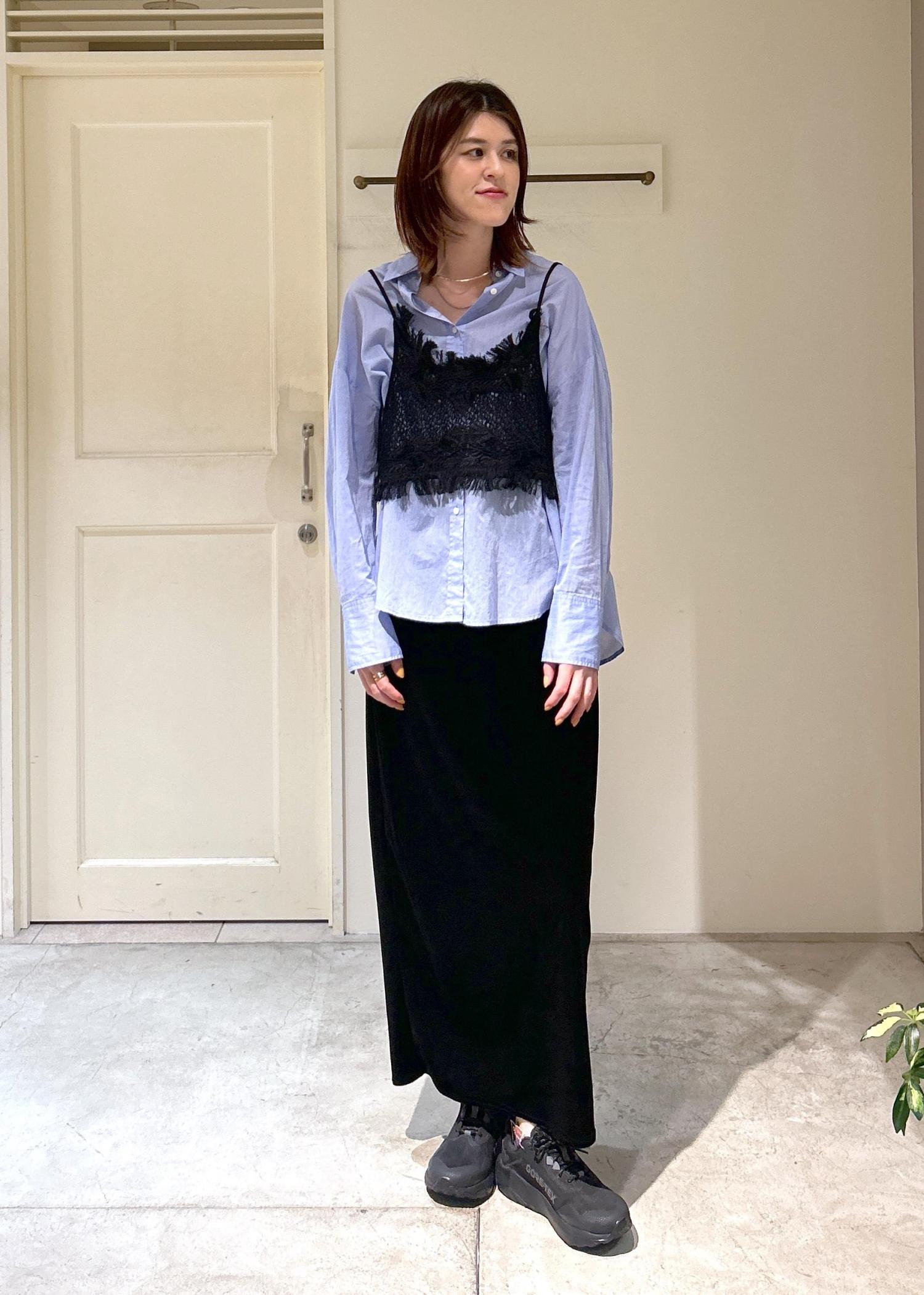 秋冬のレイヤードスタイルに取り入れたい、レースシアーキャミソールです!