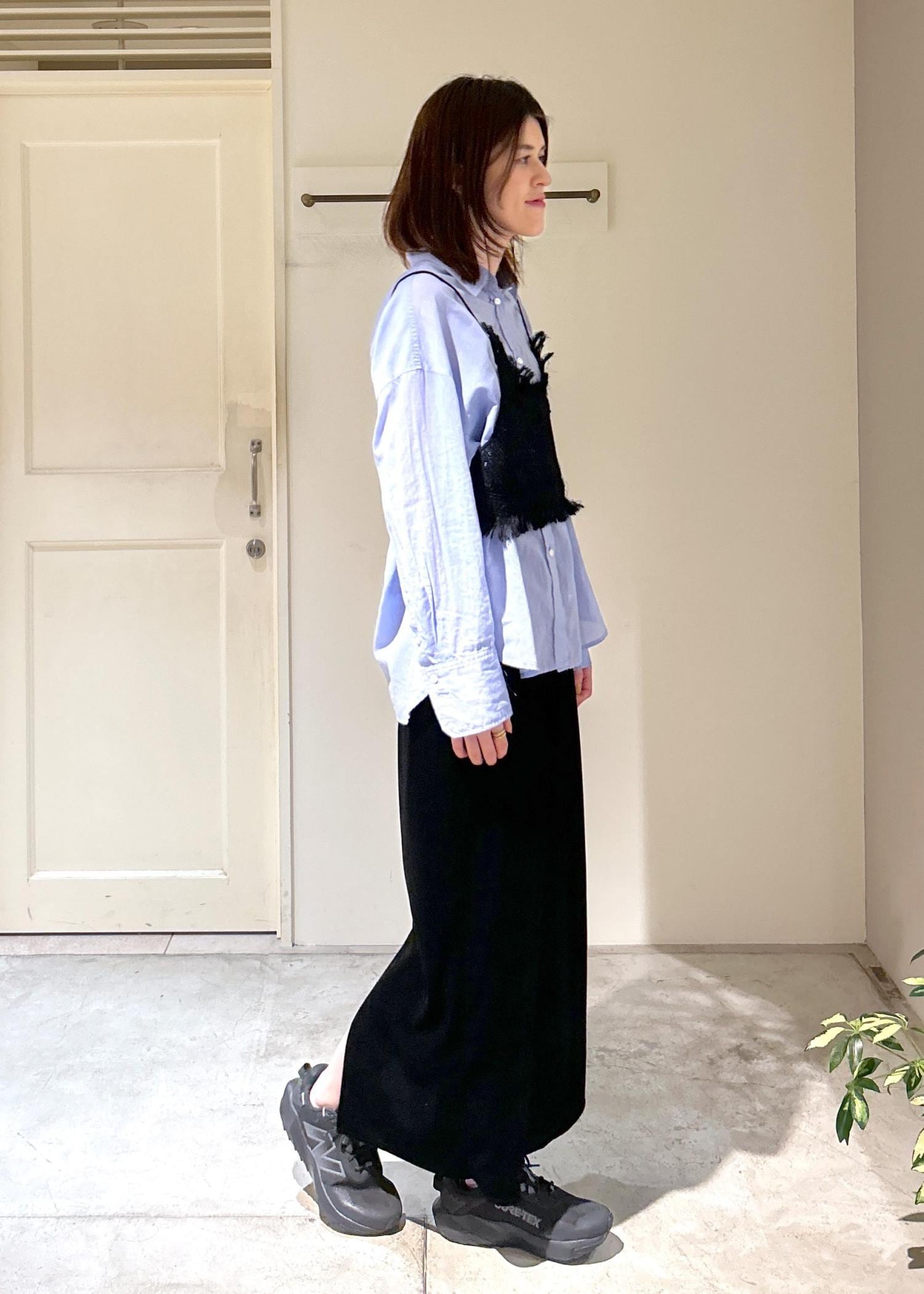 肩紐の調整はできませんが、長めにとられていてゆったりとしたつくり。ニットの上にも使えるので、オールシーズン着られます。