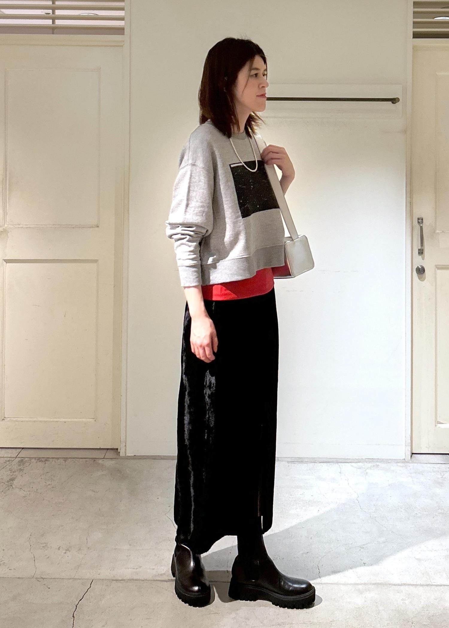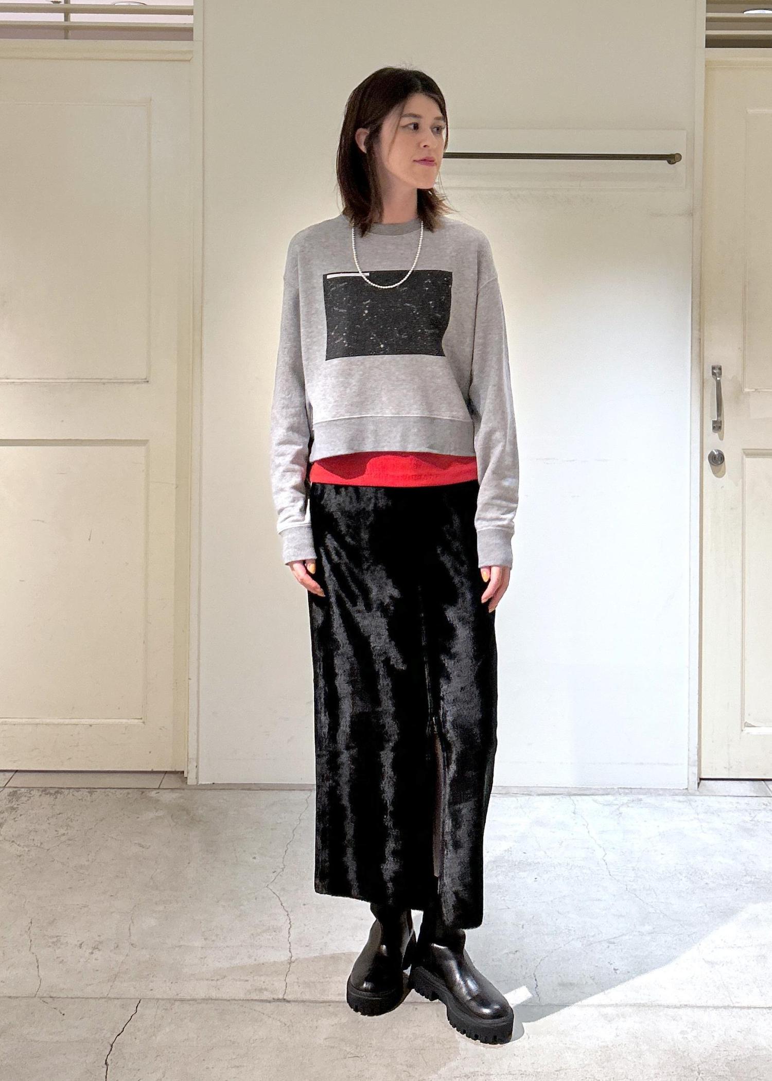 スッキリしたクロップド丈のJim Goldbergのスウェットはレイヤードしてもかわいいです!