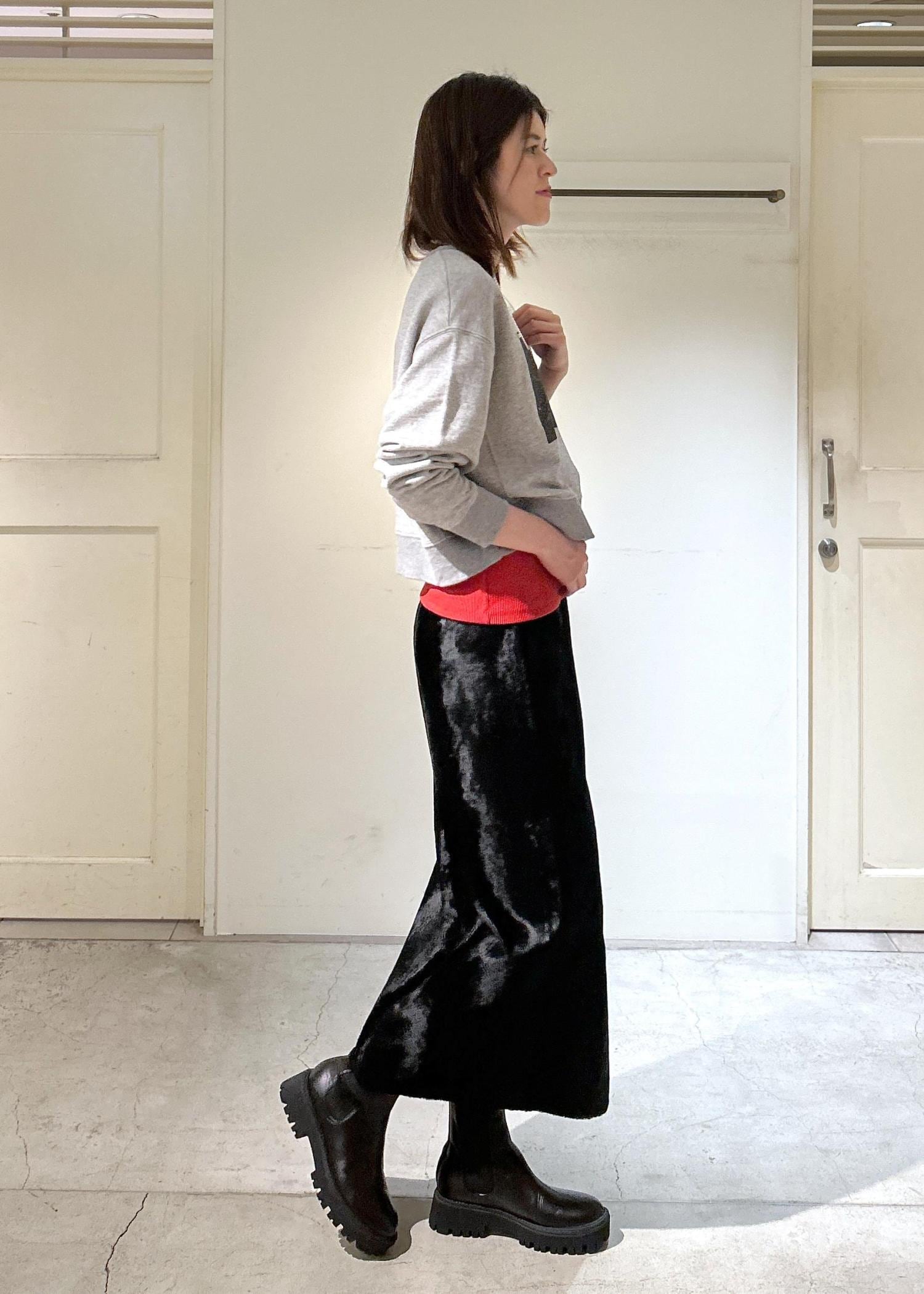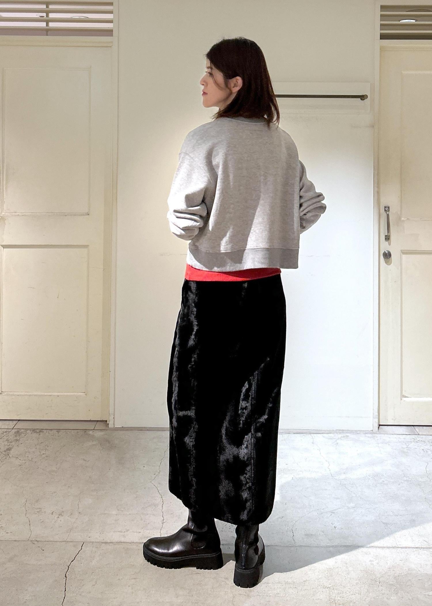 リアルな毛並み感のある肌触りで、ツヤのある質感。重さはなく、履きやすいので秋冬にはピッタリなボリューム感のあるスカートです。 -