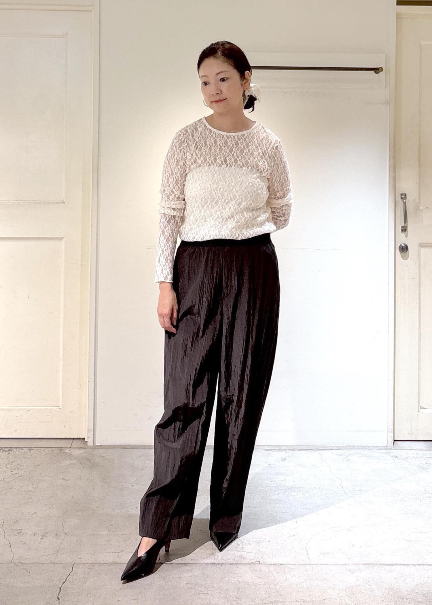 SALON adam et ropéレースシアートップス[ストレッチ]オフホワイト / F¥14,300レビュー収縮性のあるレース。シャリ感もあり、肌に吸い付く感じはありません。手の甲にかかる長め丈で留まりもいいので、ジャケットやシャツのレイヤードが素敵にきまります。ロングシーズンお使いいただけます。