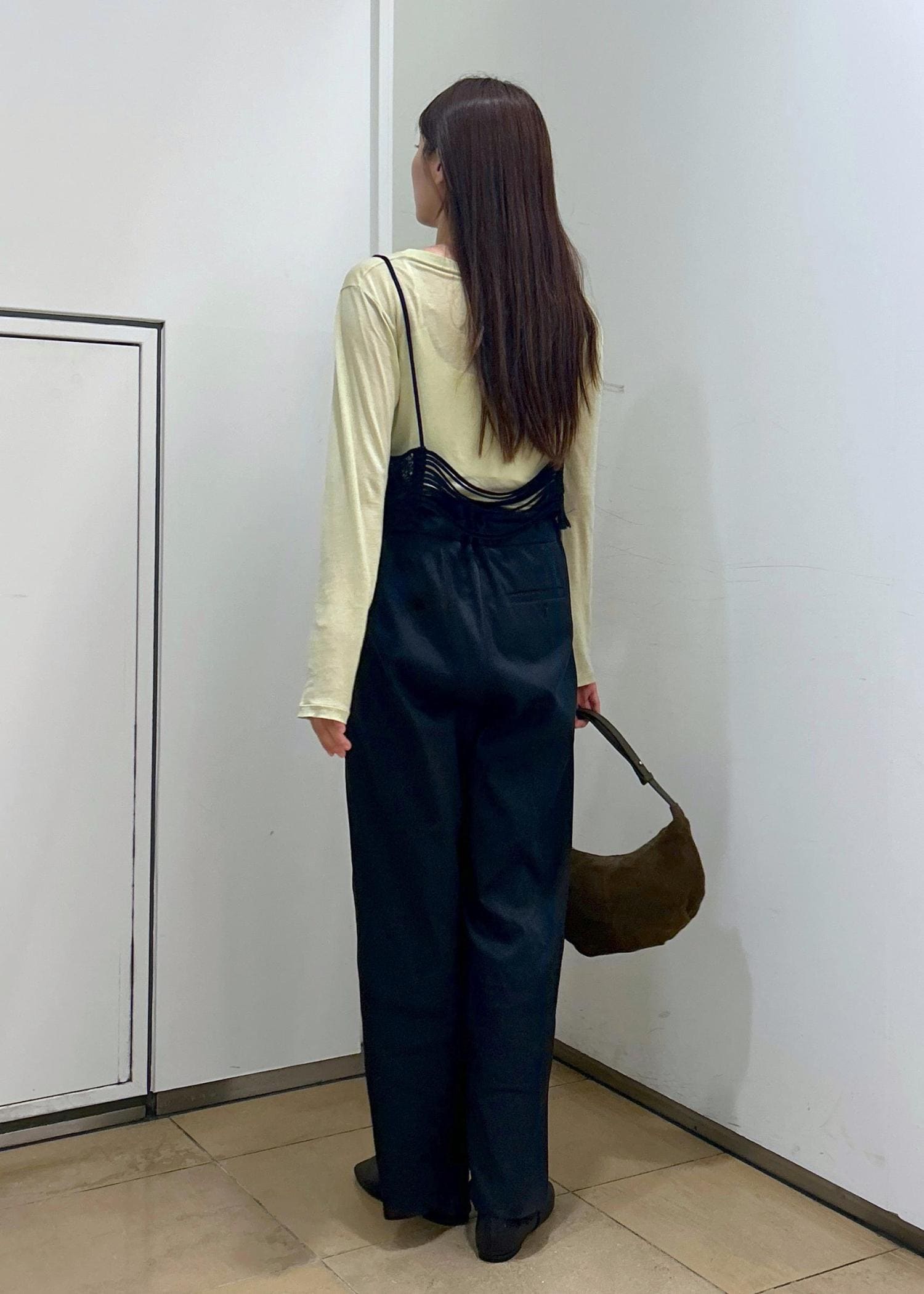 ハイウエストで履いてもらうパンツでバックゴムになっており楽ちんに着用いただけます。
