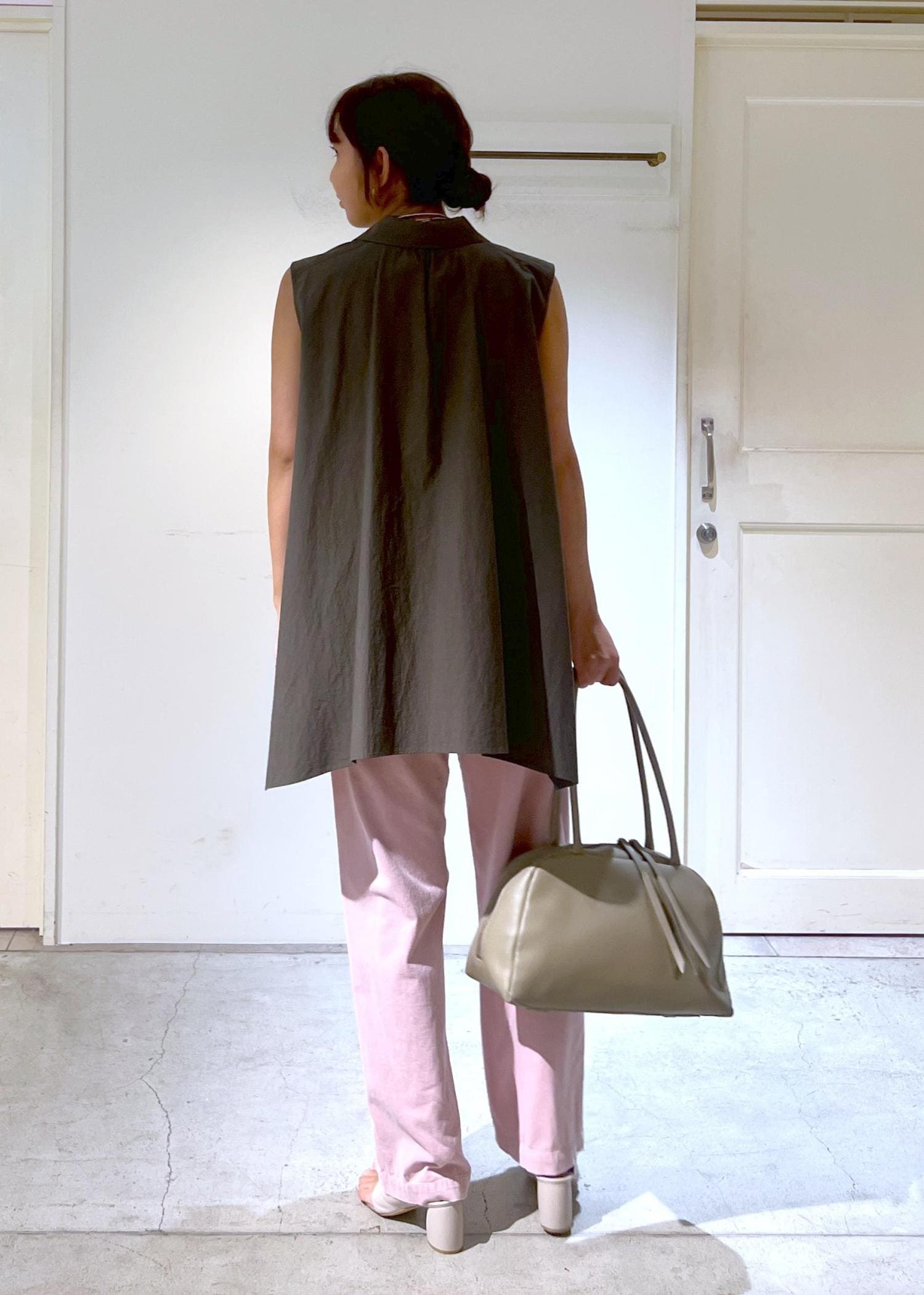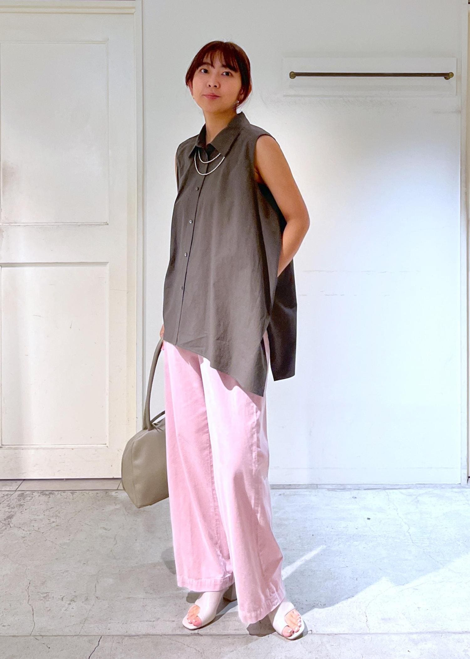立体的なシルエットが魅力のシャツは綺麗なさらっとした生地感なのでカジュアルなパンツとも相性が良いです!