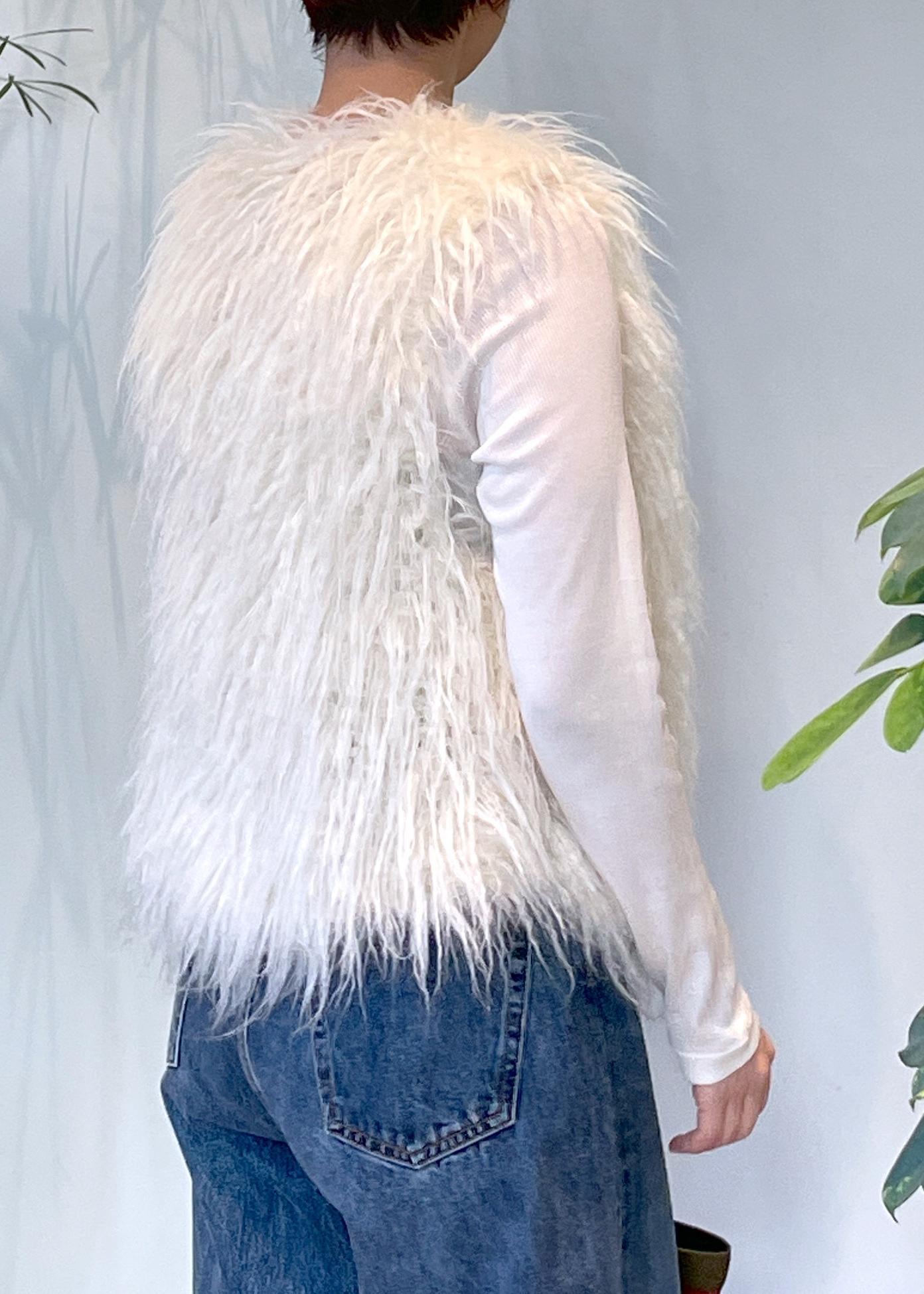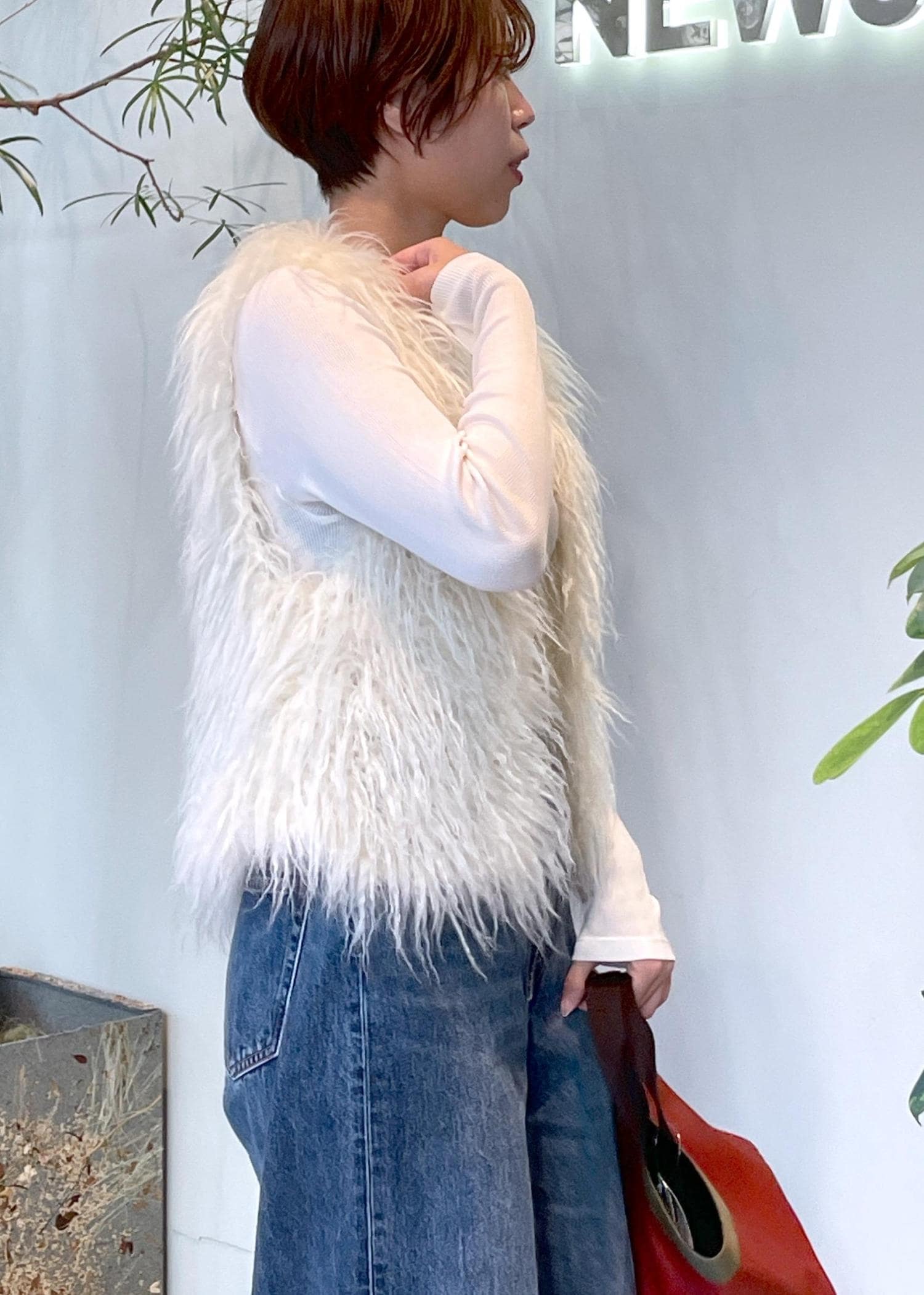 SALON adam et ropéモヘヤロングシャギーハンドニットベストオフホワイト / F¥29,700レビュー着丈はヒップにかかるくらいの長さ。
