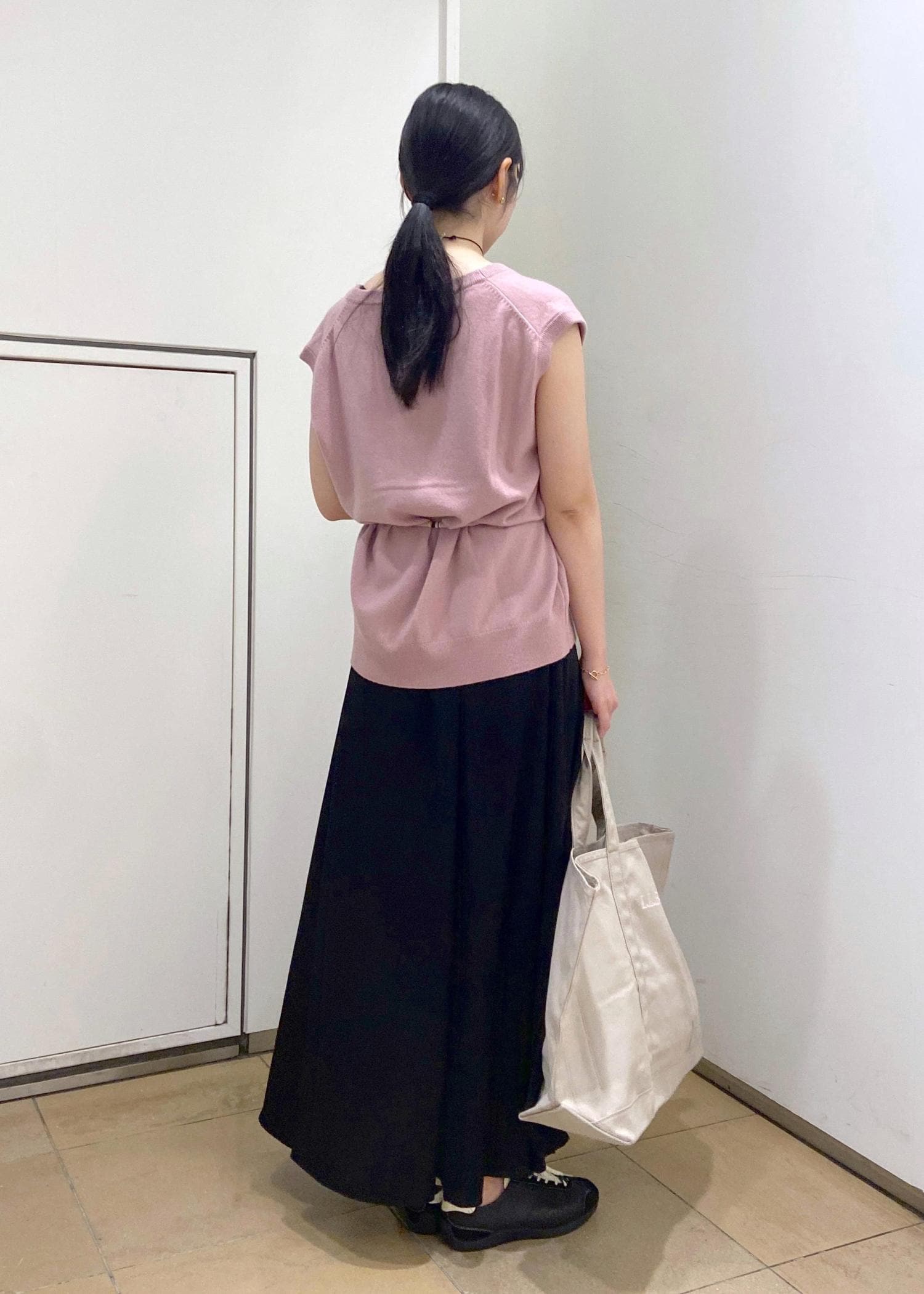 ウエストはオールゴム。腰まわりはゆとりがあり、身体のラインを拾いません。