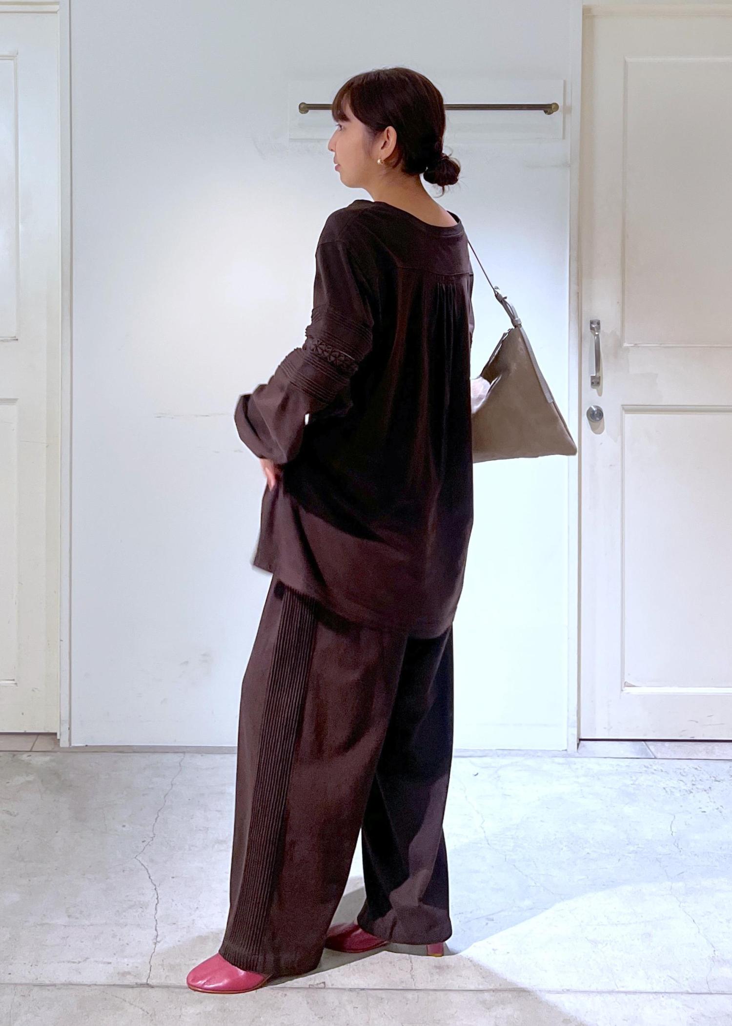 柔らかな着心地と、フィータならではどこか女性らしさを感じるディティールがさりげなく素敵なアイテム。