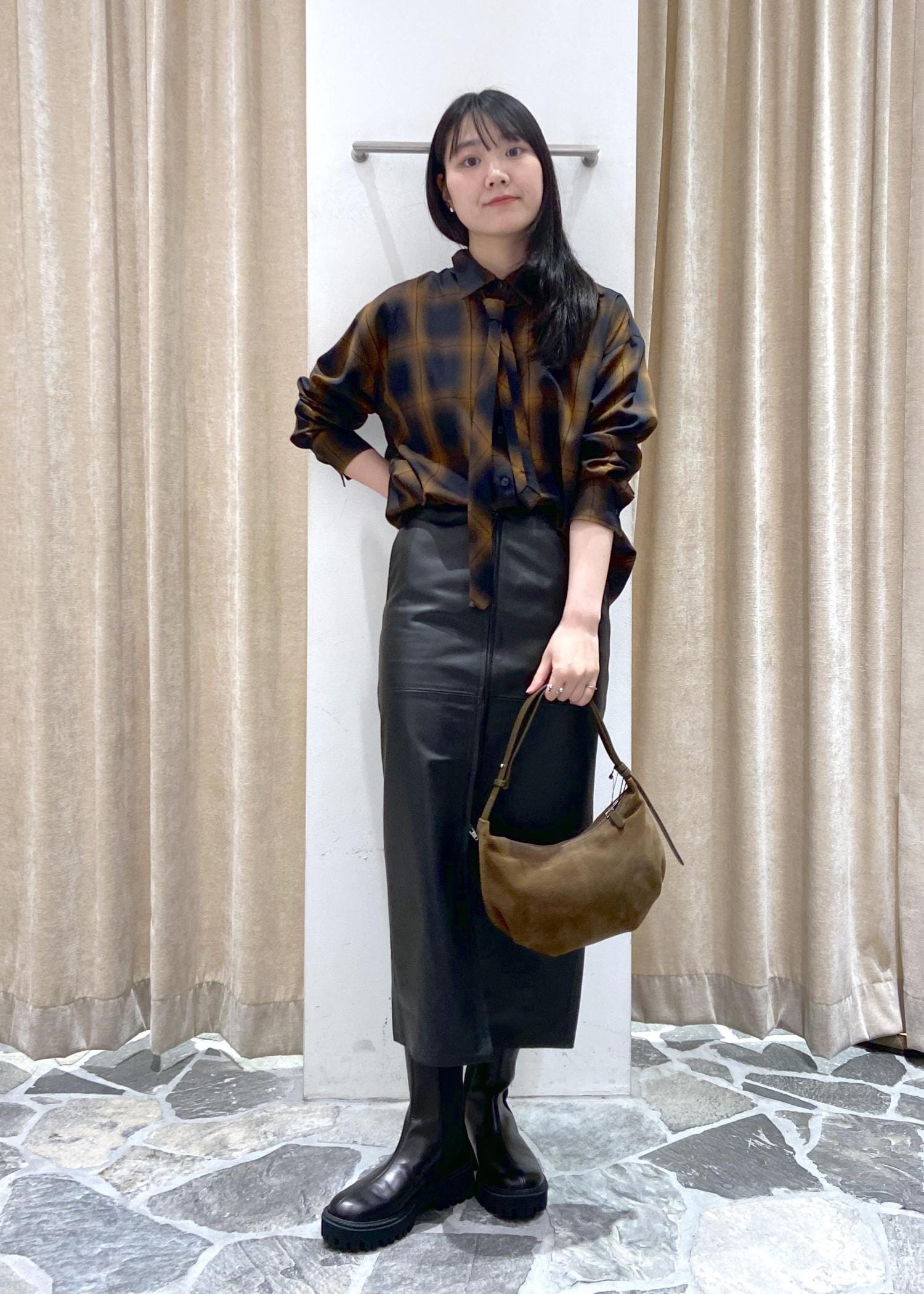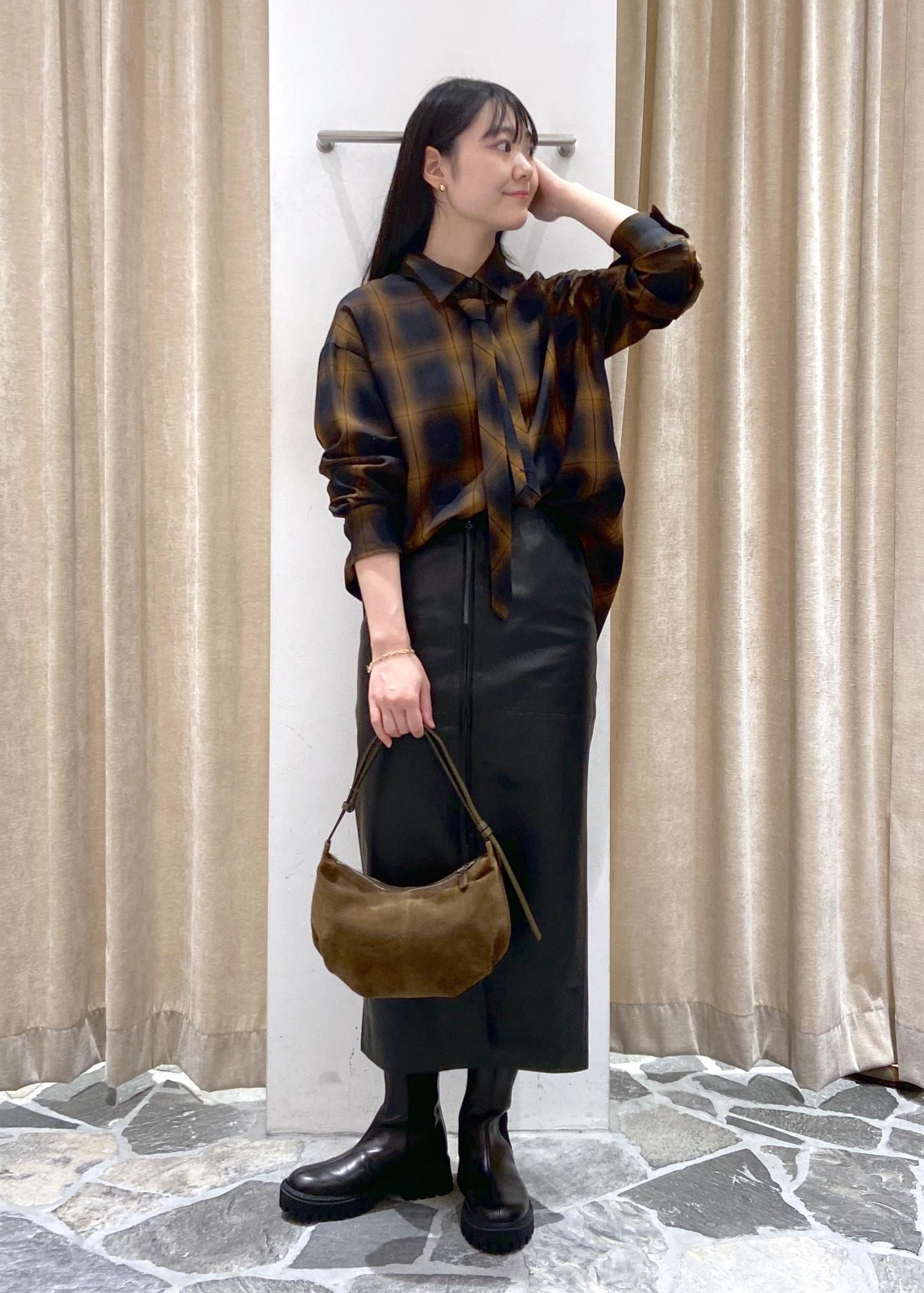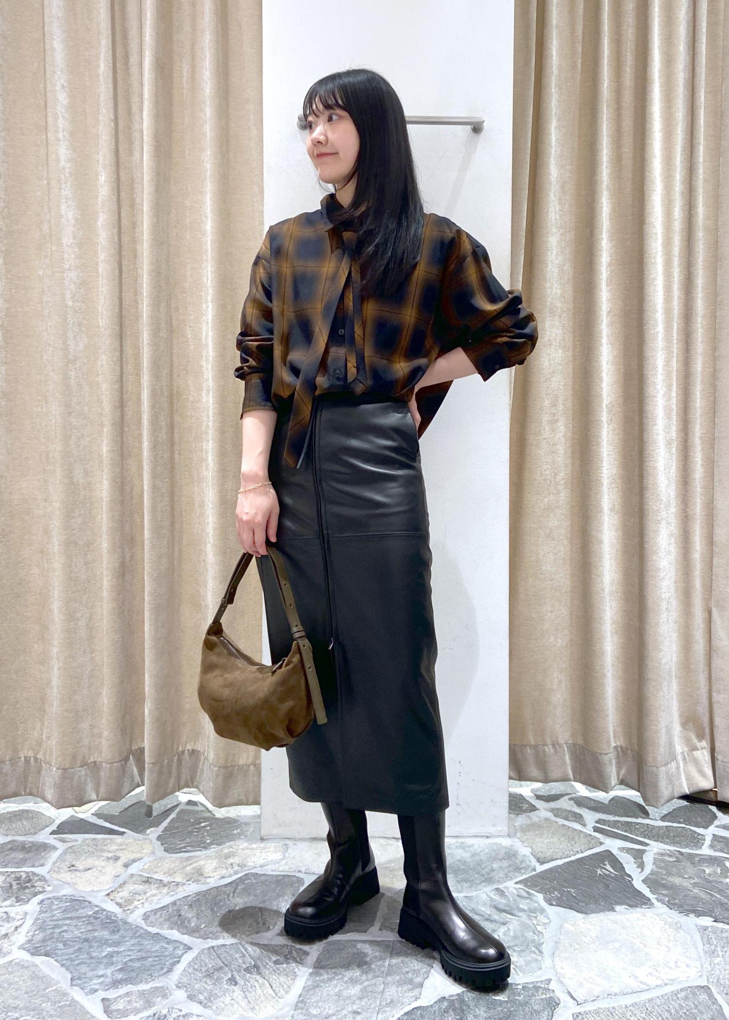 シックな雰囲気で着てみたく、ネクタイシャツを合わせてみました。