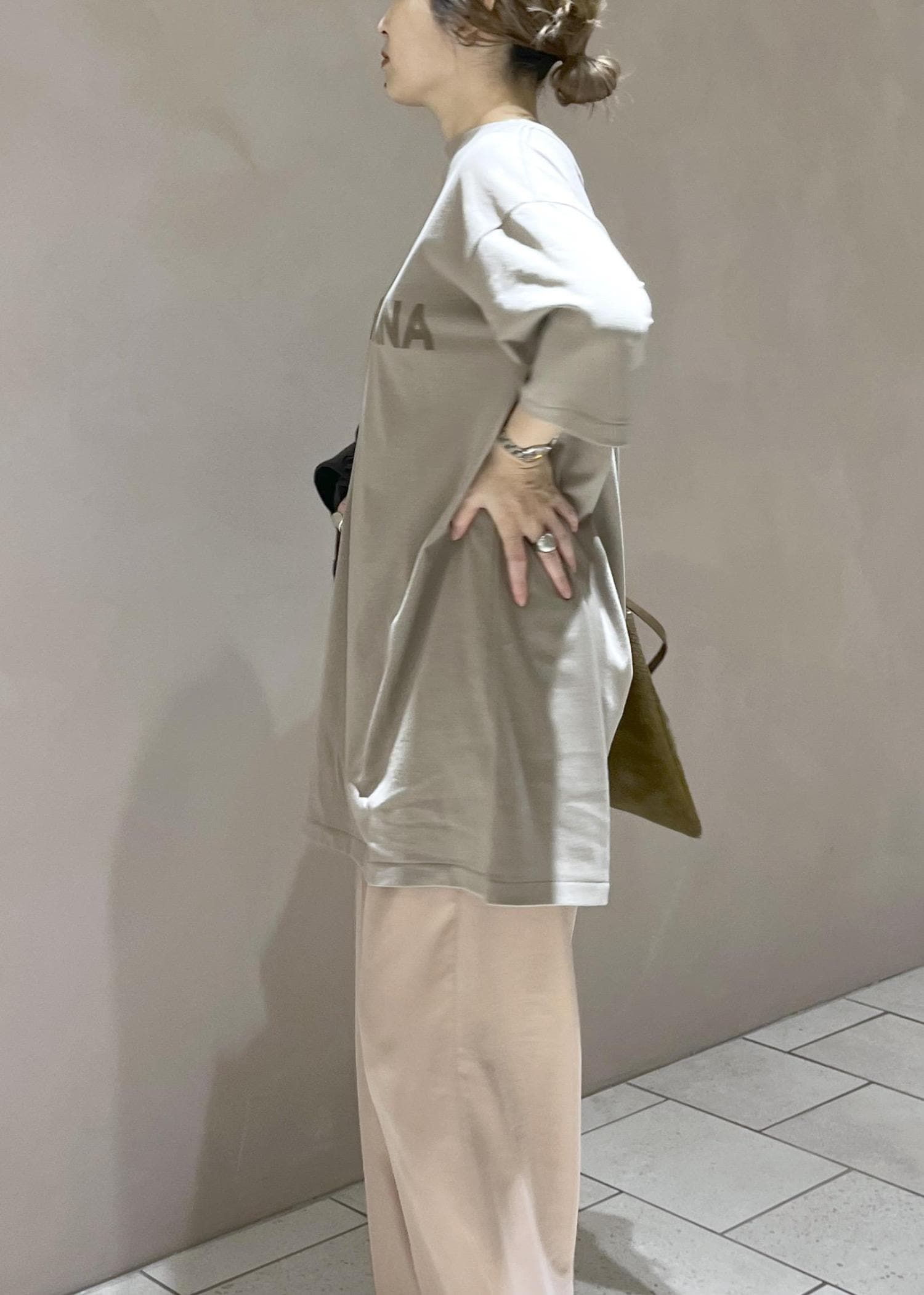 SALON adam et ropé【Americana(アメリカーナ) for SALON】別注ロゴTシャツベージュ系 / F¥10,780レビューチュニック程のたっぷりした丈があり、Tシャツにレギンス的なものを合わせるのも新しいです。