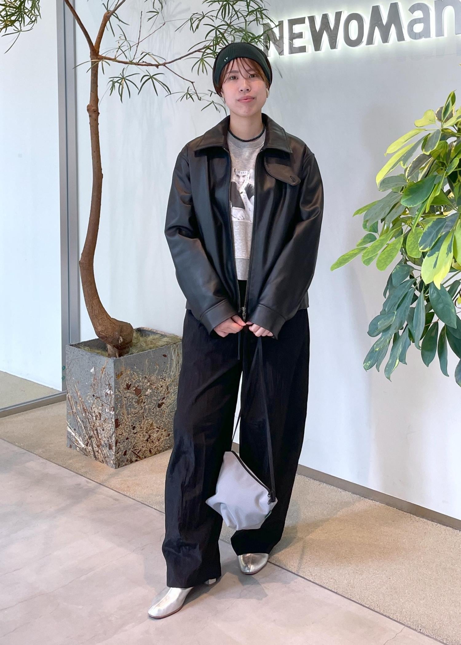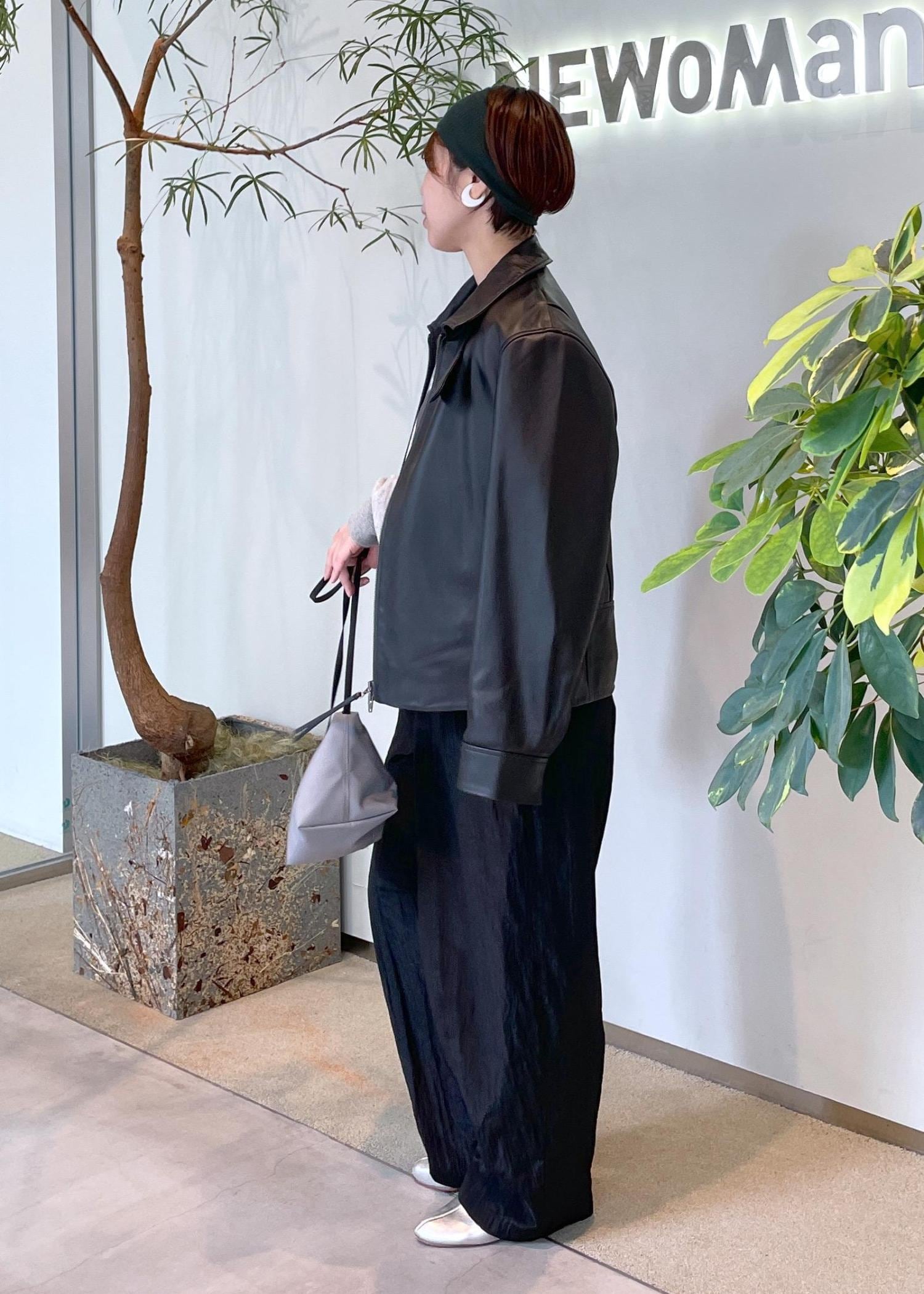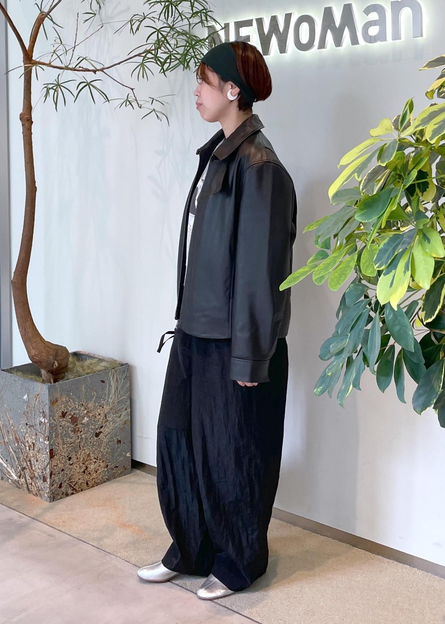 SALON adam et ropéラムレザージップブルゾンブラック / F¥99,000レビュー着心地が軽く、柔らかいラムレザー。後ろのサイドにタックが入ってるので、フォルムがシャープすぎず女性らしい印象になります。