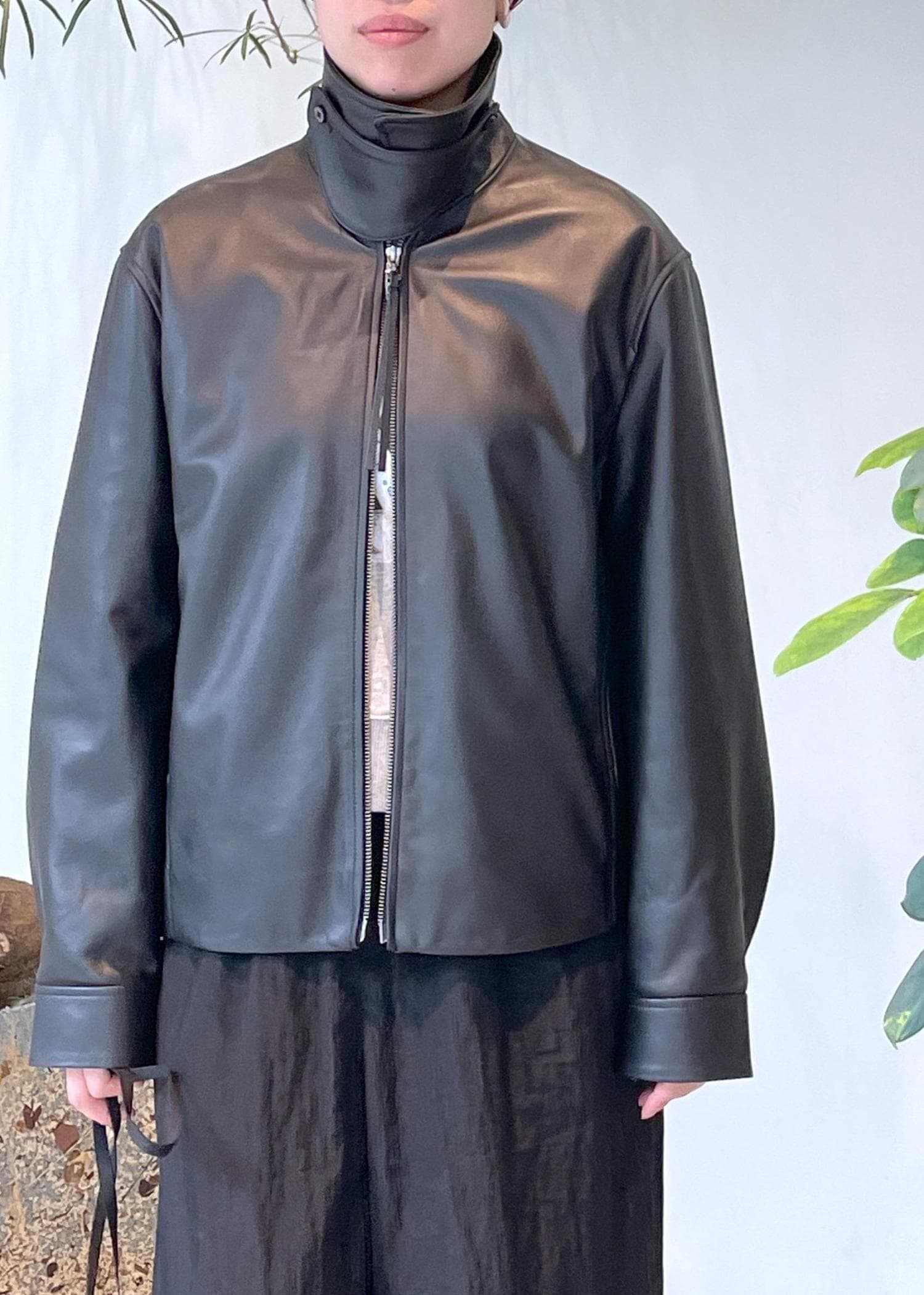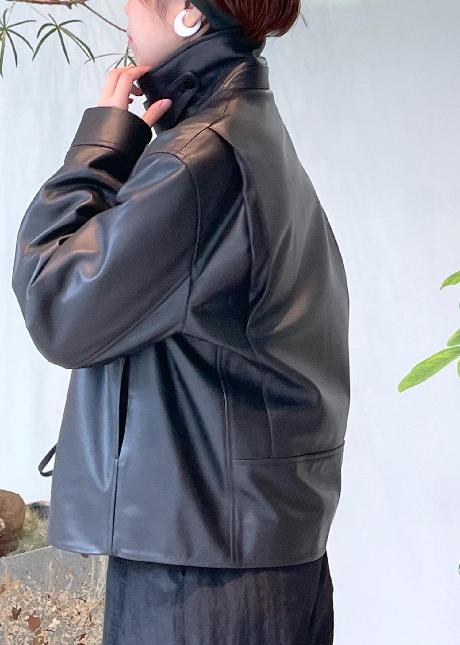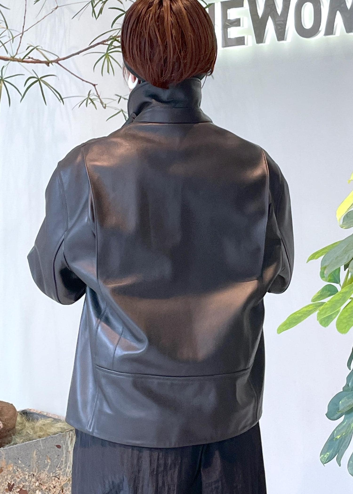 SALON adam et ropéラムレザージップブルゾンブラック / F¥99,000レビュー着心地が軽く、柔らかいラムレザー。後ろのサイドにタックが入ってるので、フォルムがシャープすぎず女性らしい印象になります。