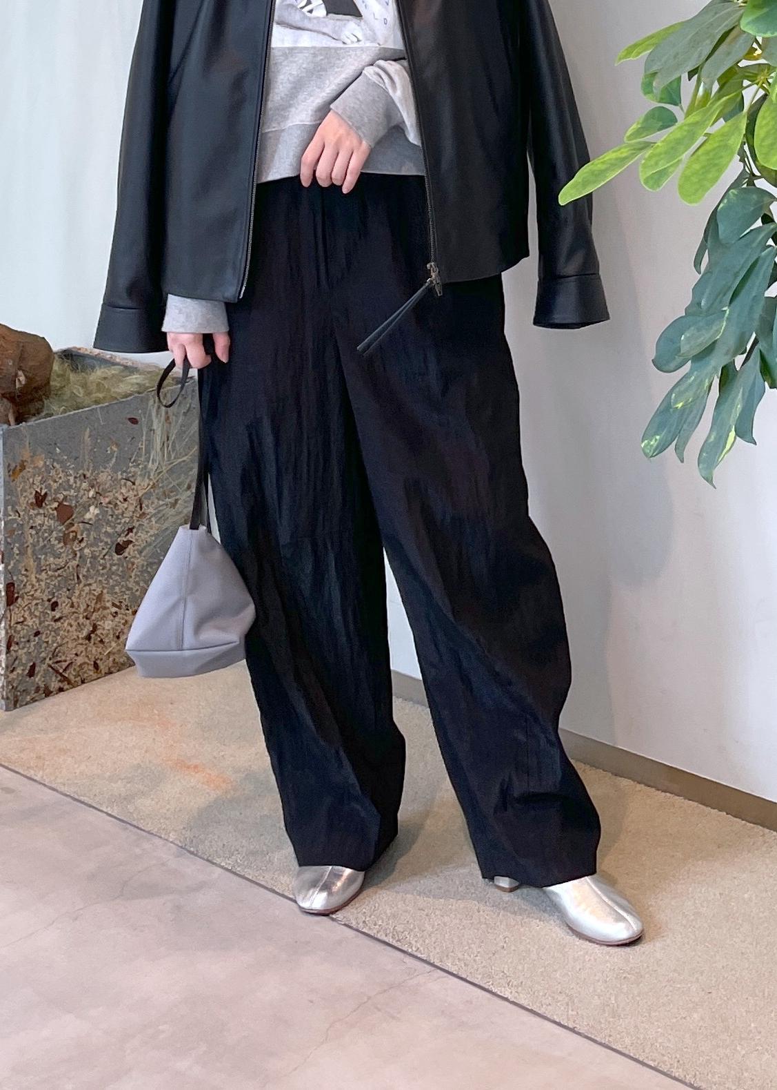 アウトレットSALON adam et ropéウールナイロンワッシャーパンツブラック / F¥10,120レビューウエストゴムでイージーな履き心地。