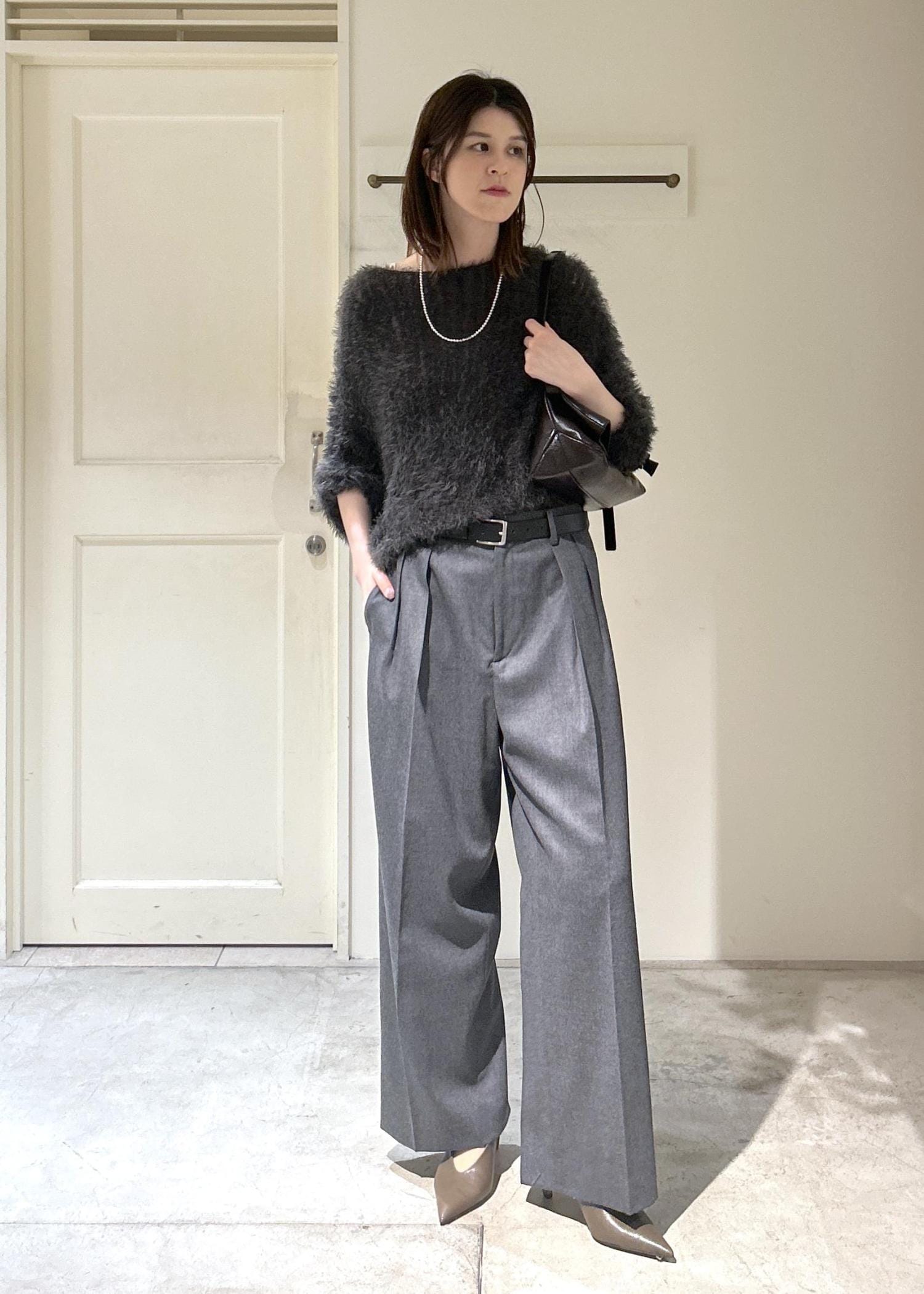 ウールのタックパンツは形がキレイで、合わせるだけでまとまります。