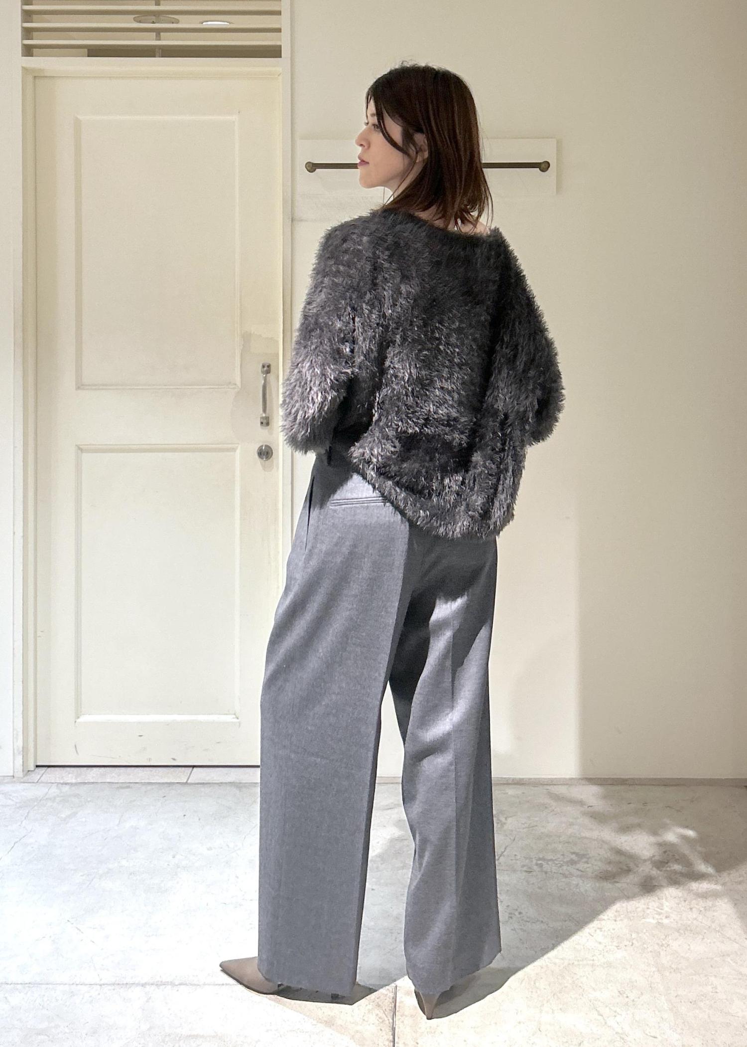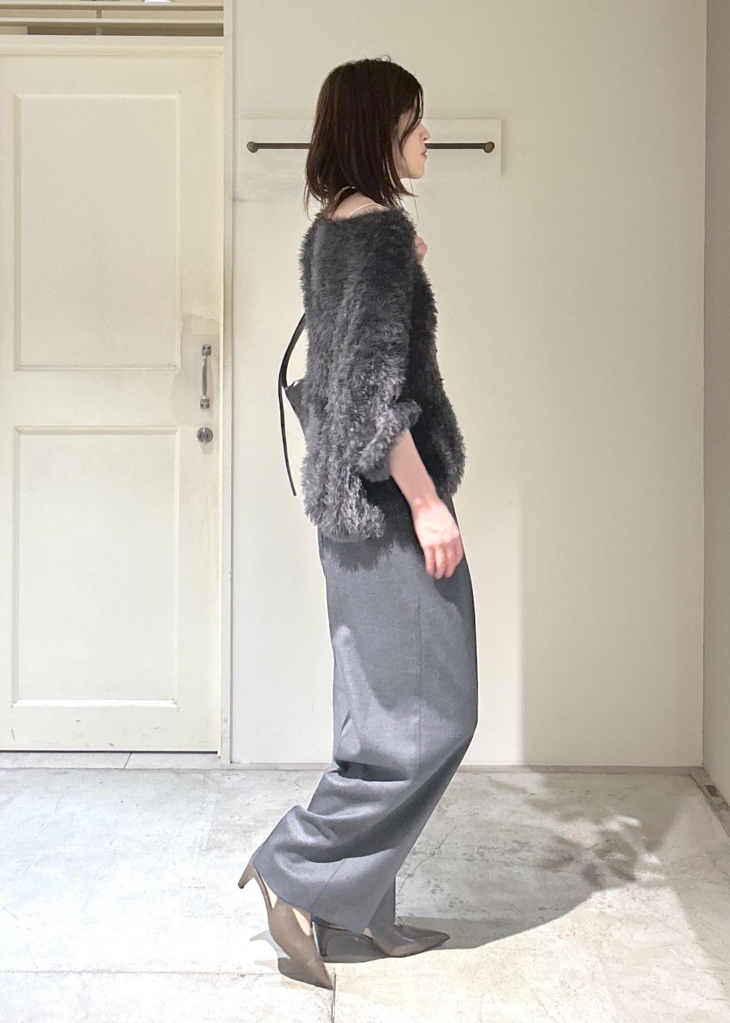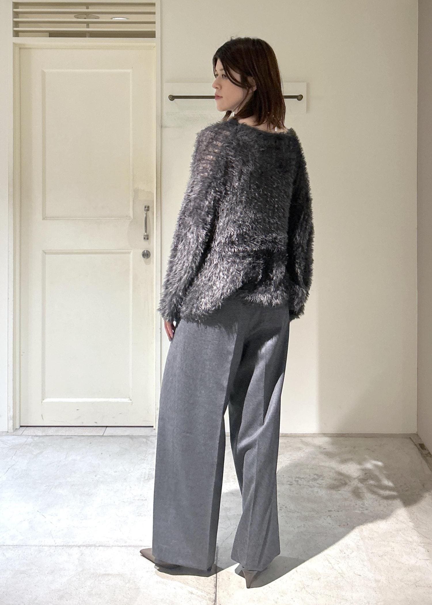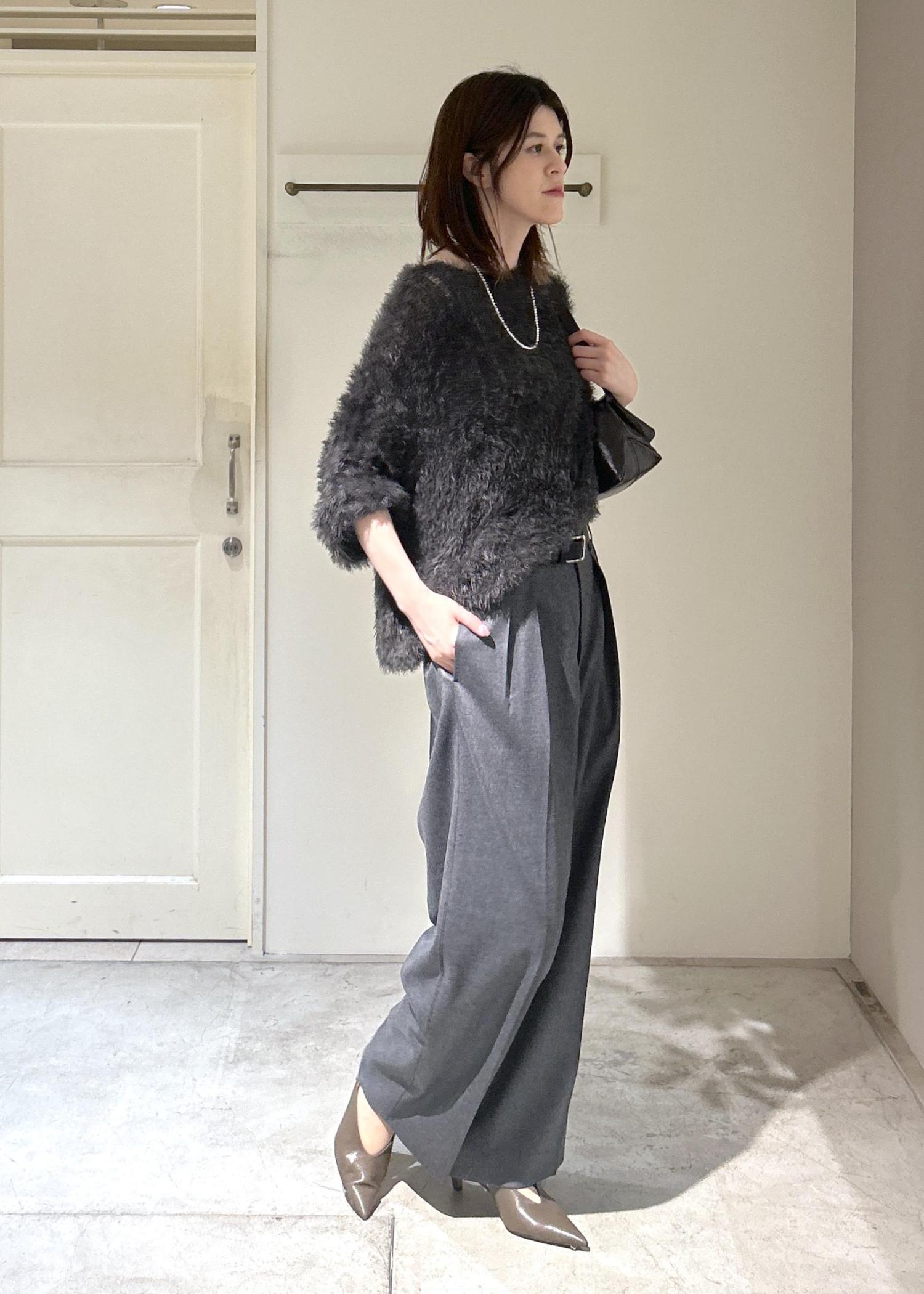 柔らかくて気持ちの良いニットです。シャギーニットでもシアー感があり、抜け感の出るアイテムです。パンツとスカートどちらの合わせもおすすめです! -