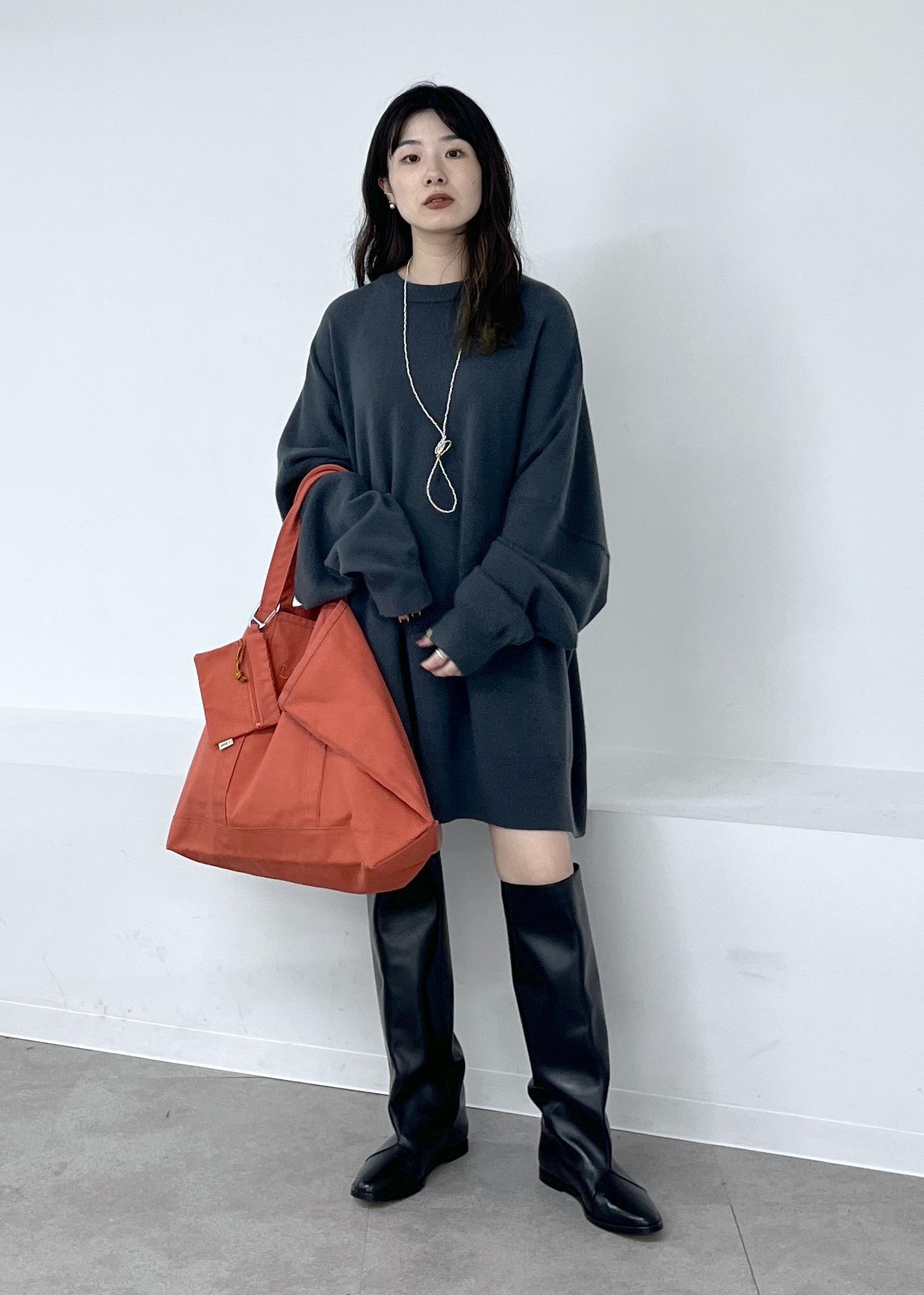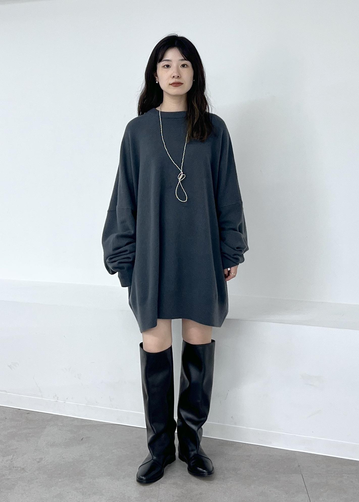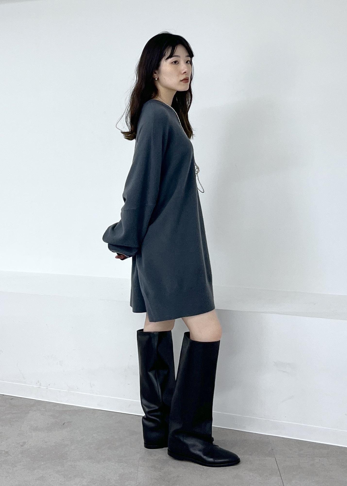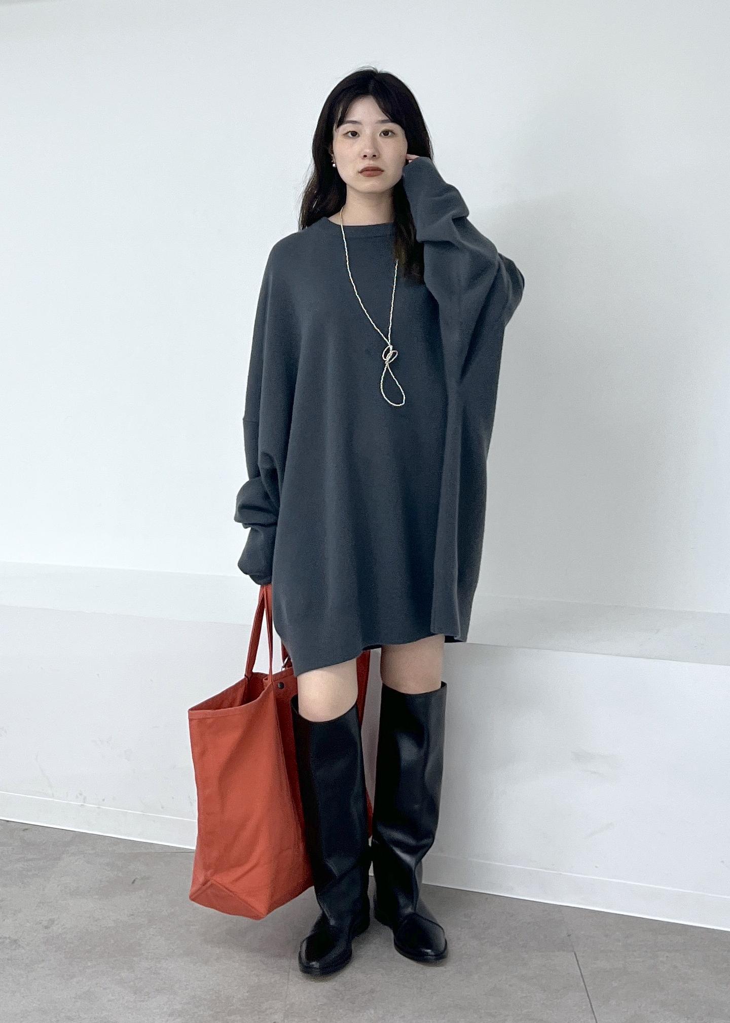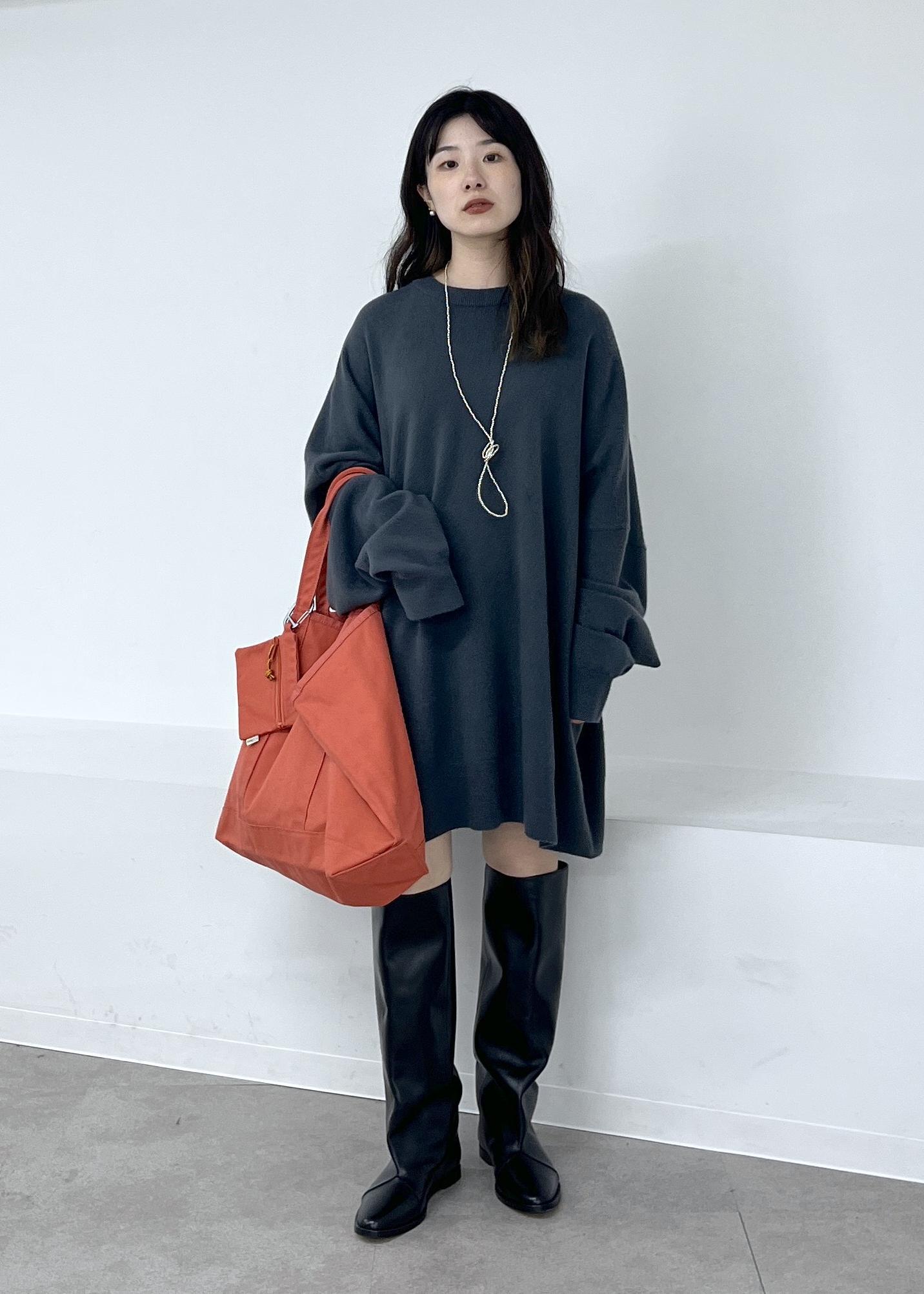 肌触りの良いカシミヤ素材。体を包み込むようなシルエットのワンピースで一枚でもレイヤードしても可愛いです。 -