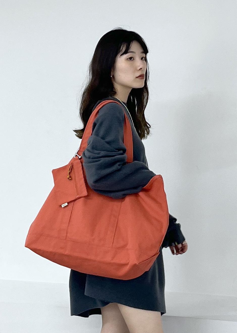 折りたためて持ち運びも楽ちんな大容量バッグ。一からデザインしたミニポーチが付いた特別なグロサリートートです。秋冬カラーも可愛い♡ -