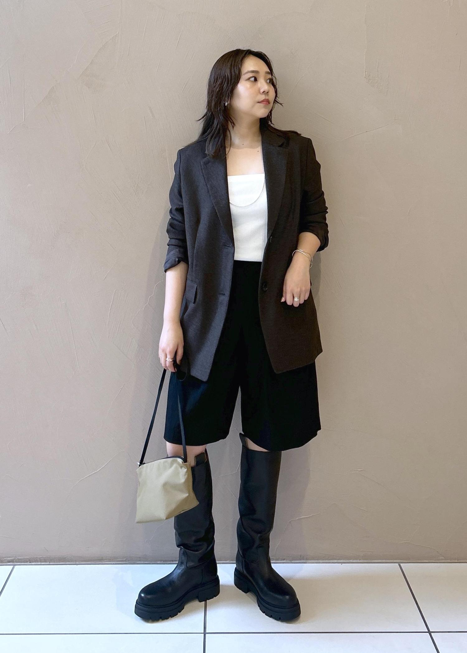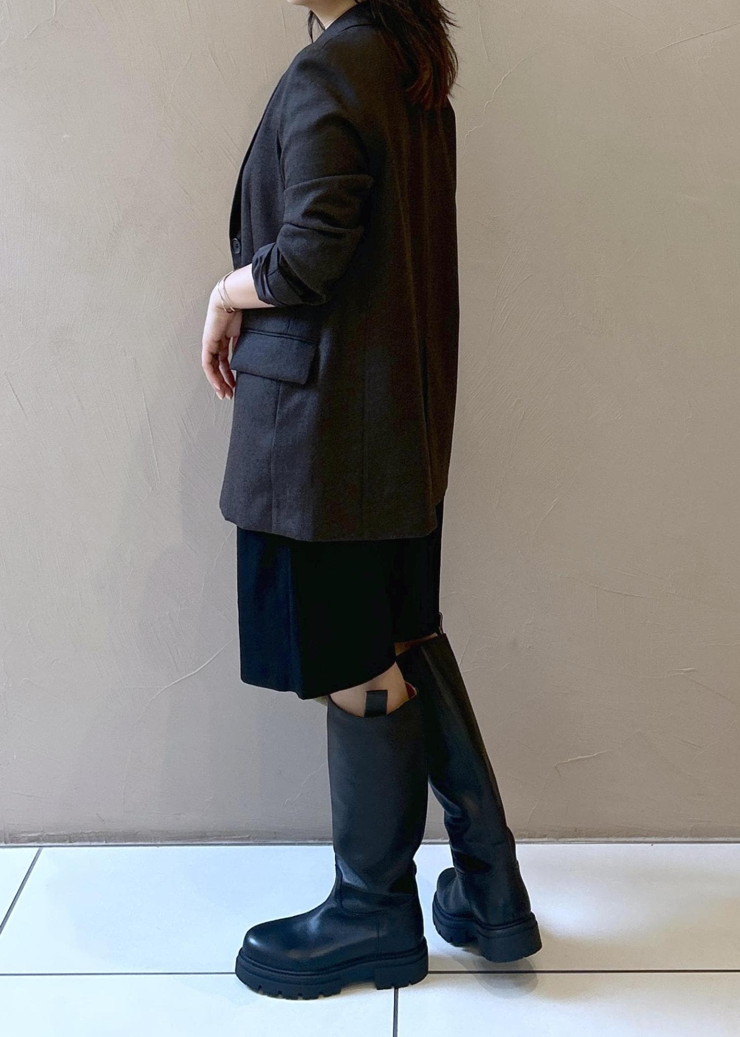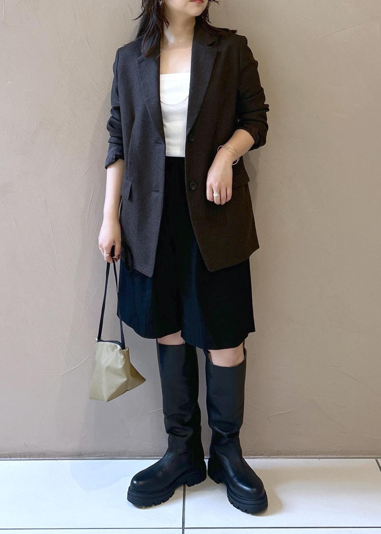 ウールのジャケットはオーバーサイズなつくりで、マニッシュな印象にも◎