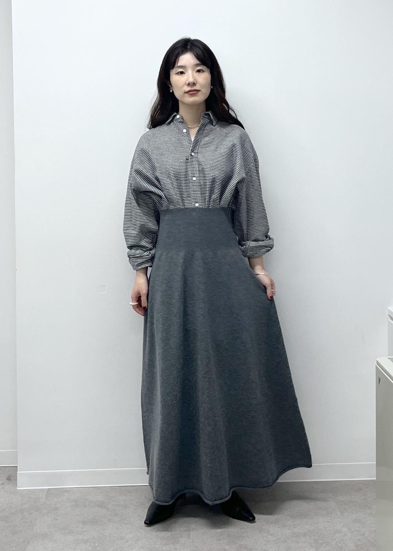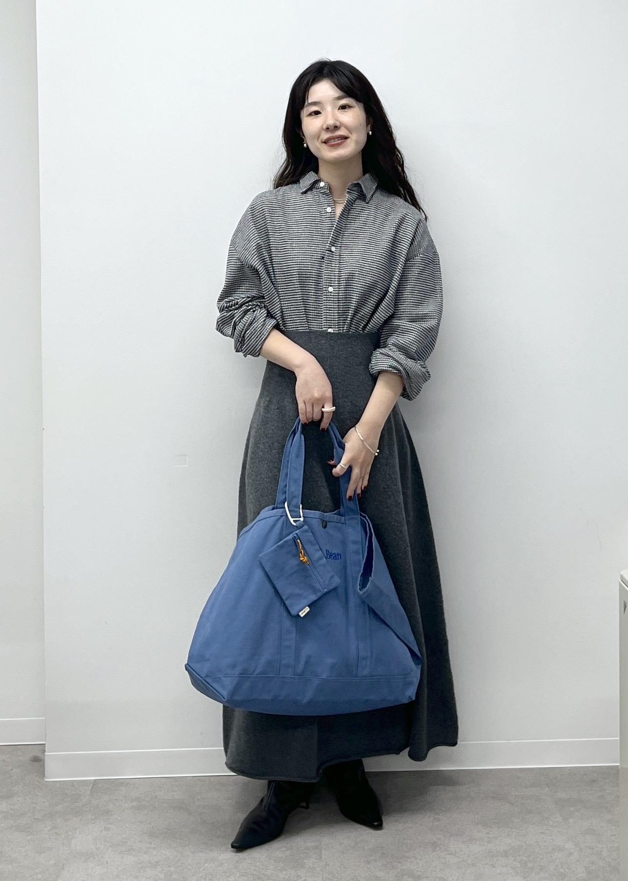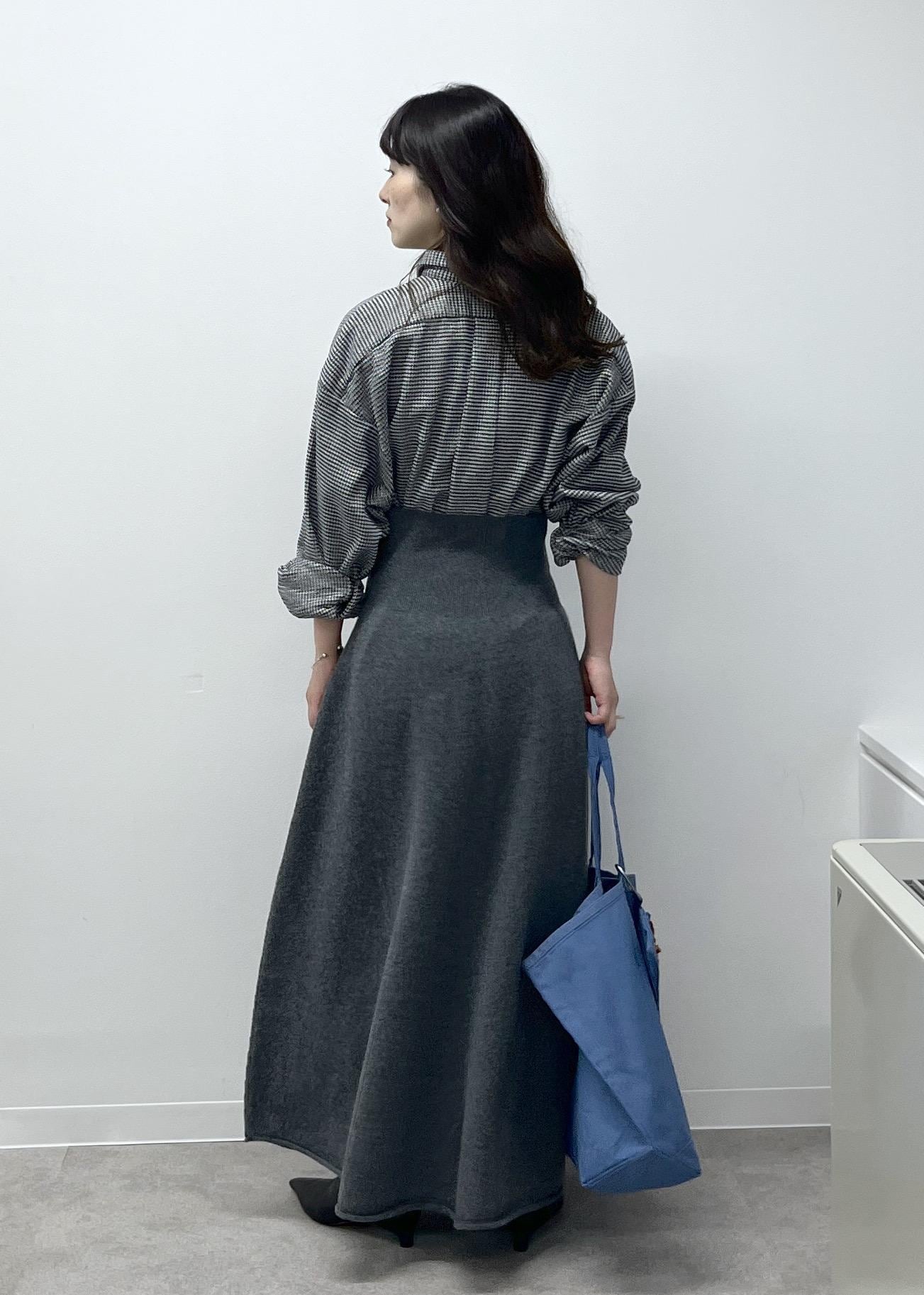 オーバーサイズ。自身の身長だとシャツワンピースとしても着用できる着丈の長さです。