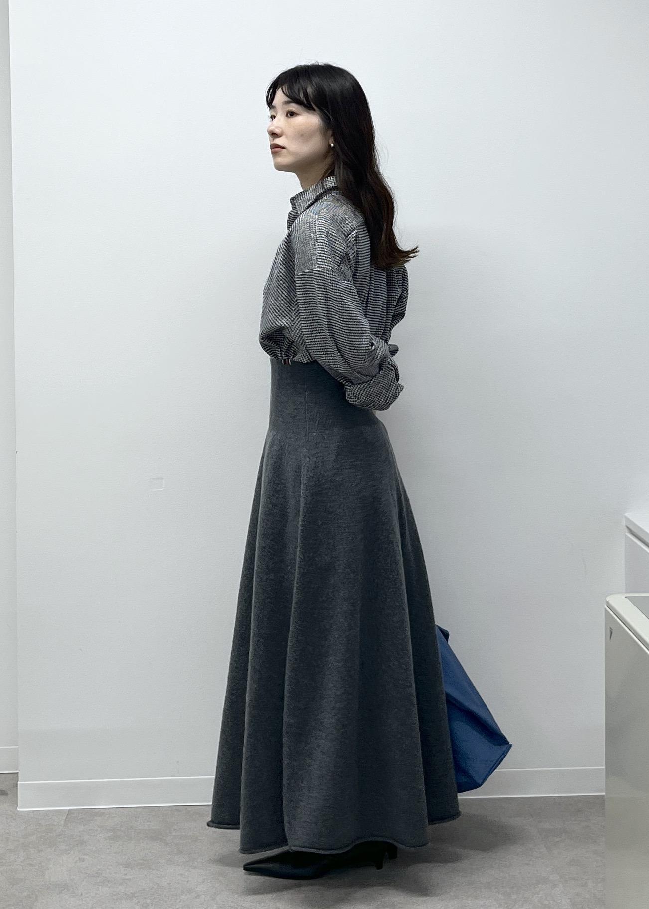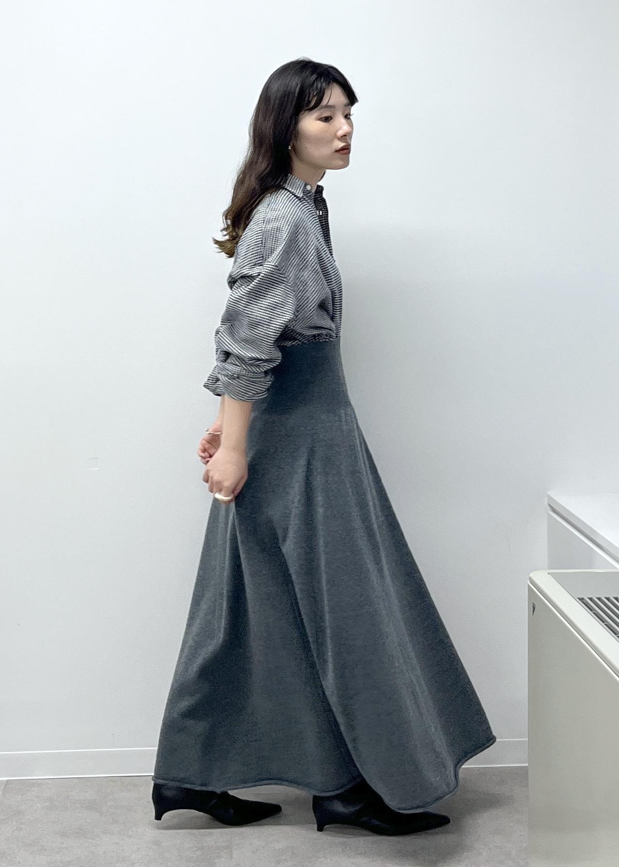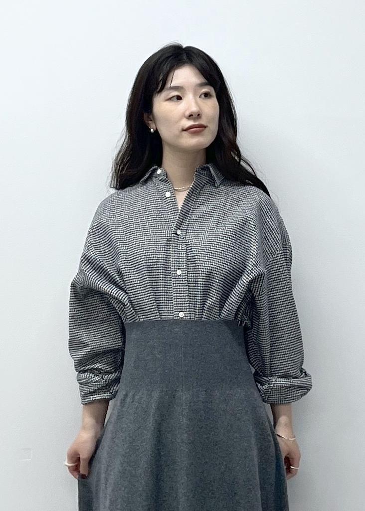 オーバーサイズ。自身の身長だとシャツワンピースとしても着用できる着丈の長さです。