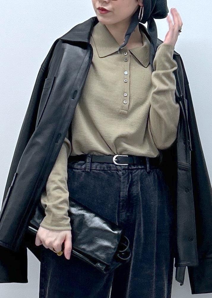 タイトめなシルエットながらも、ゆったりとした着心地のポロニット。