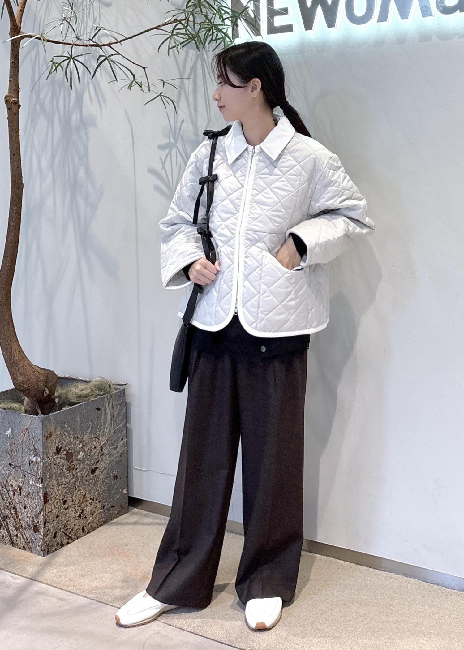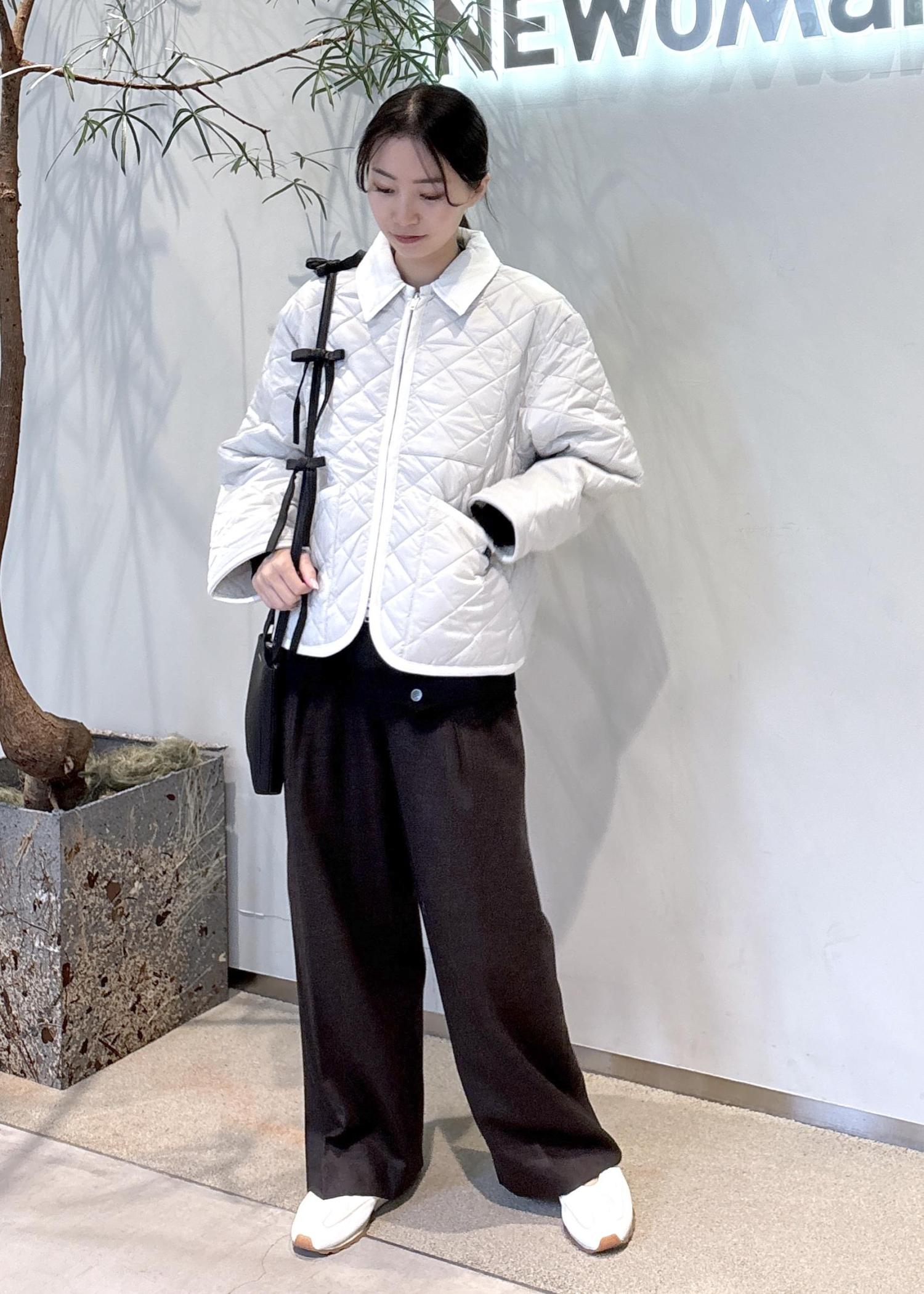 ホワイトキルティングジャケットが主役の、抜け感のあるコーデにしました。
