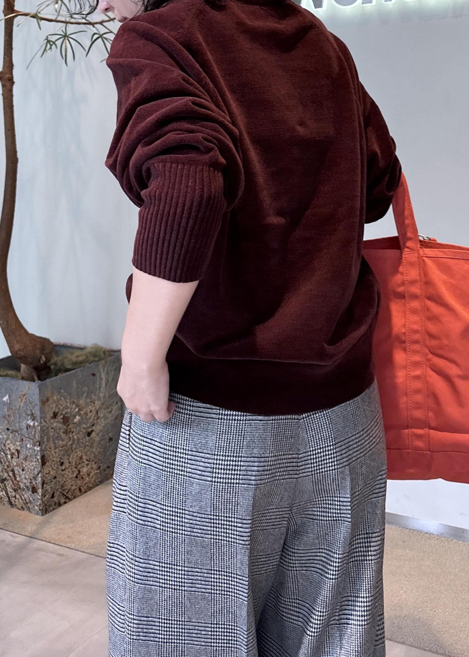 着回し力抜群のプルオーバー。オーソドックスだからこそ一枚で来てもシャツイン、ワンピースに重ねたりなど楽しみ方色々。オーバーサイズすぎないけど程よい身幅はありコーディネートも組みやすいです。