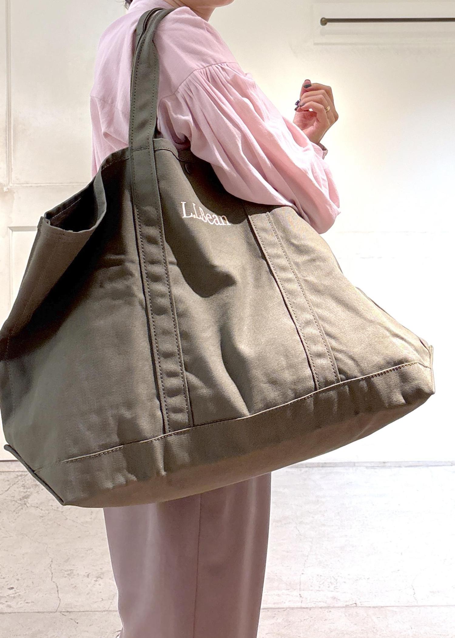 SALON adam et ropé【L.L.Bean for SALON(エル・エル・ビーン)】別注グローサリー・トート&チャームポーチカーキ / F¥7,920レビュー【サイズ感】