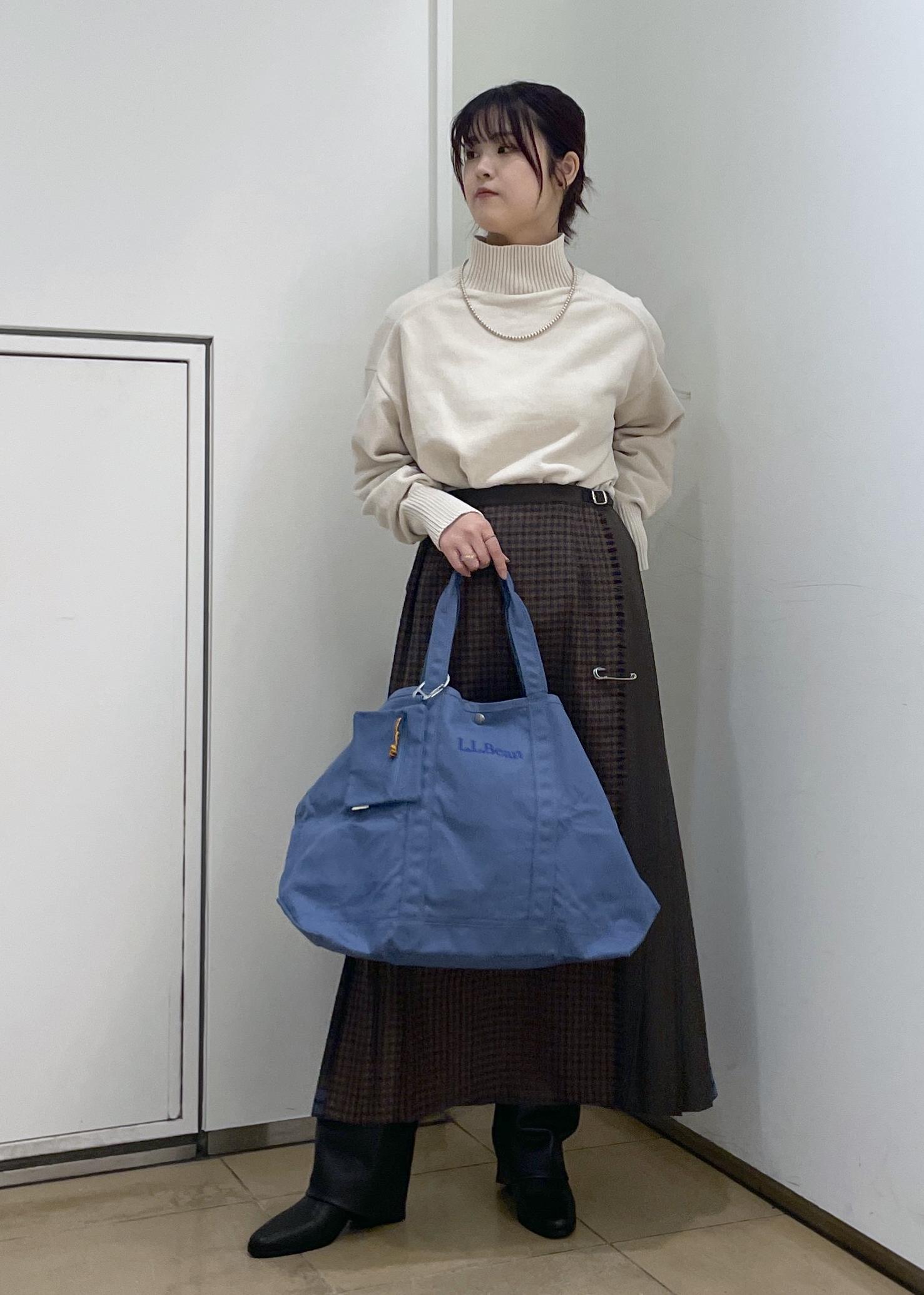 今回はブルーのL.L.Beanのバッグをあわせて知的な印象にまとめてみました。