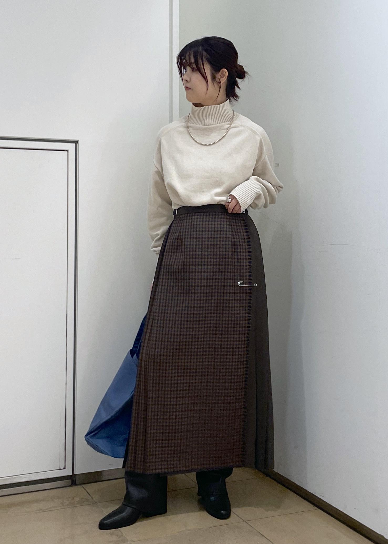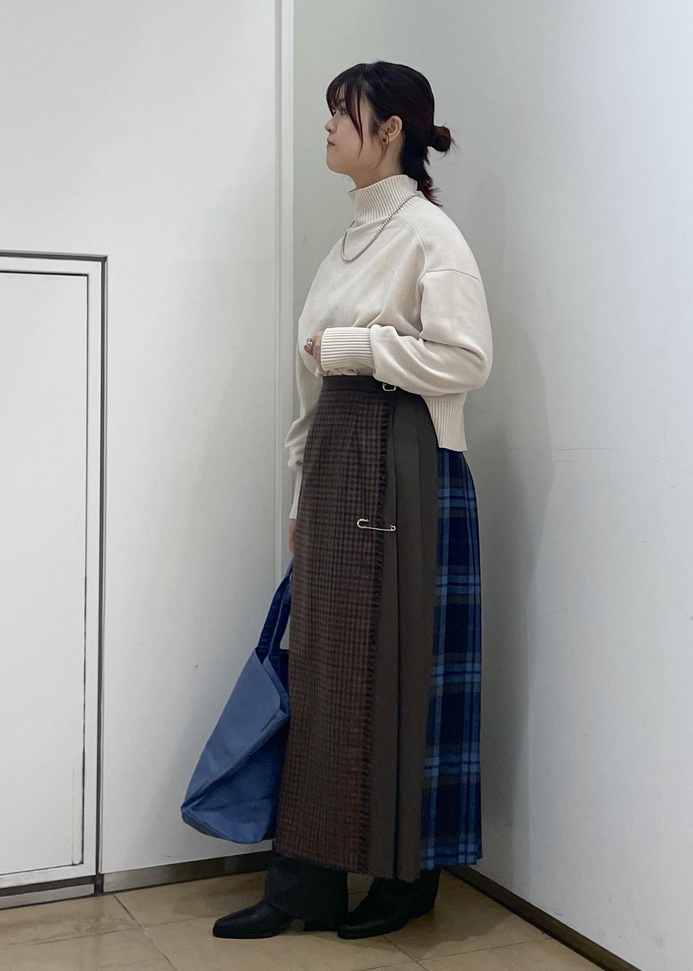 ロングな巻きスカートですが重さは感じませんでした。前と後ろで配色が違うので、合わせる服によって違った印象で着ていただけます。 -