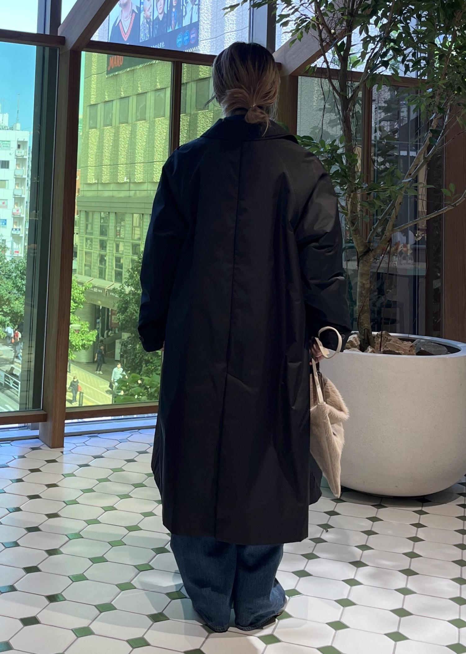 SALON adam et ropéFURLO DOWNバルマカンコート / 撥水ファーロダウンブラック / F¥64,900レビュー152cmでもふくらはぎが隠れるくらいのロング丈で着用可能。裾に向かって緩やかに広がるテントシルエットで横や後ろから見ても綺麗。厚手のトップスも着込めます。