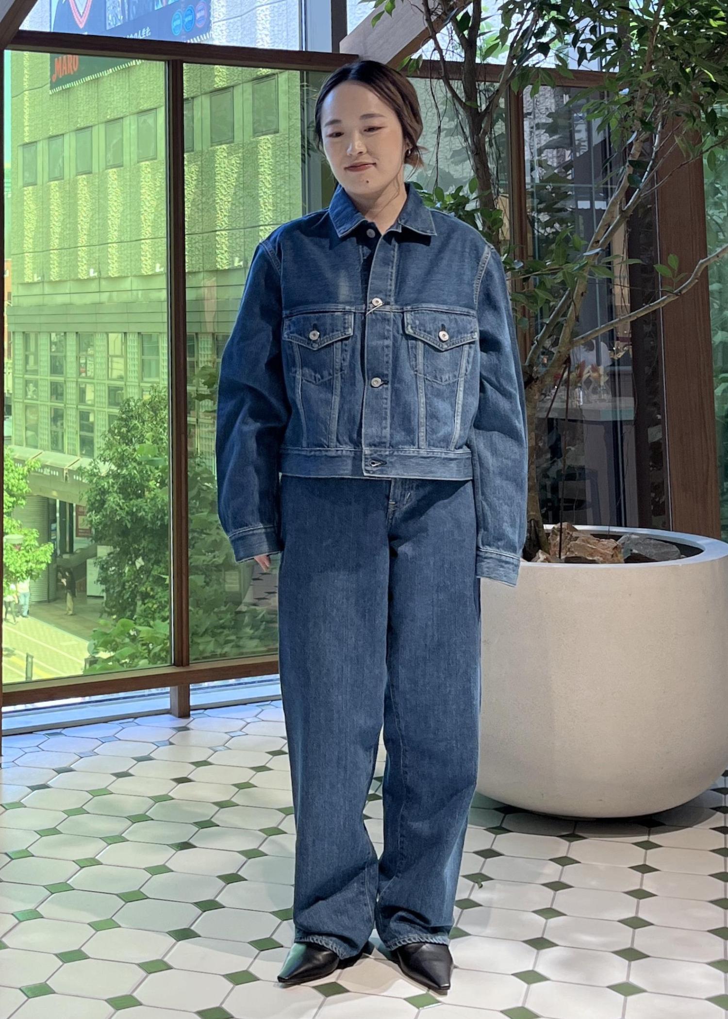 SALON adam et ropé【KURO for SALON(クロ)】別注カルラデニムジャケット / カーラブルー系 / F¥39,600レビュー丈はお尻上のコンパクト丈。身幅はキツすぎずユルすぎず薄手なニットなら下に着込めます。