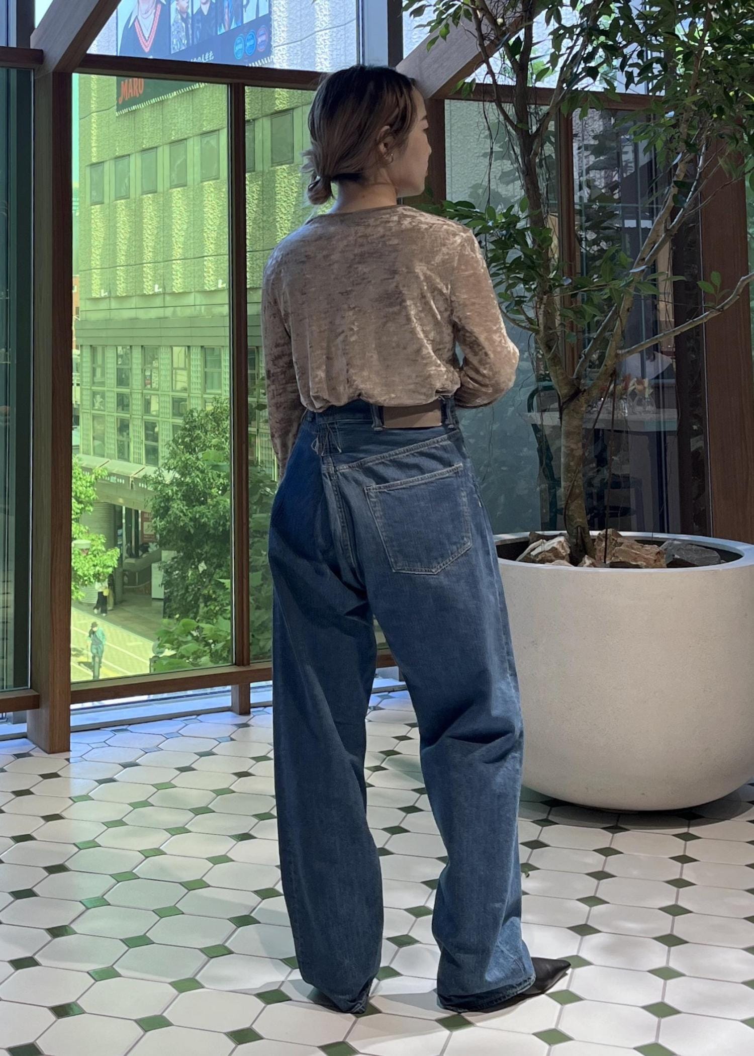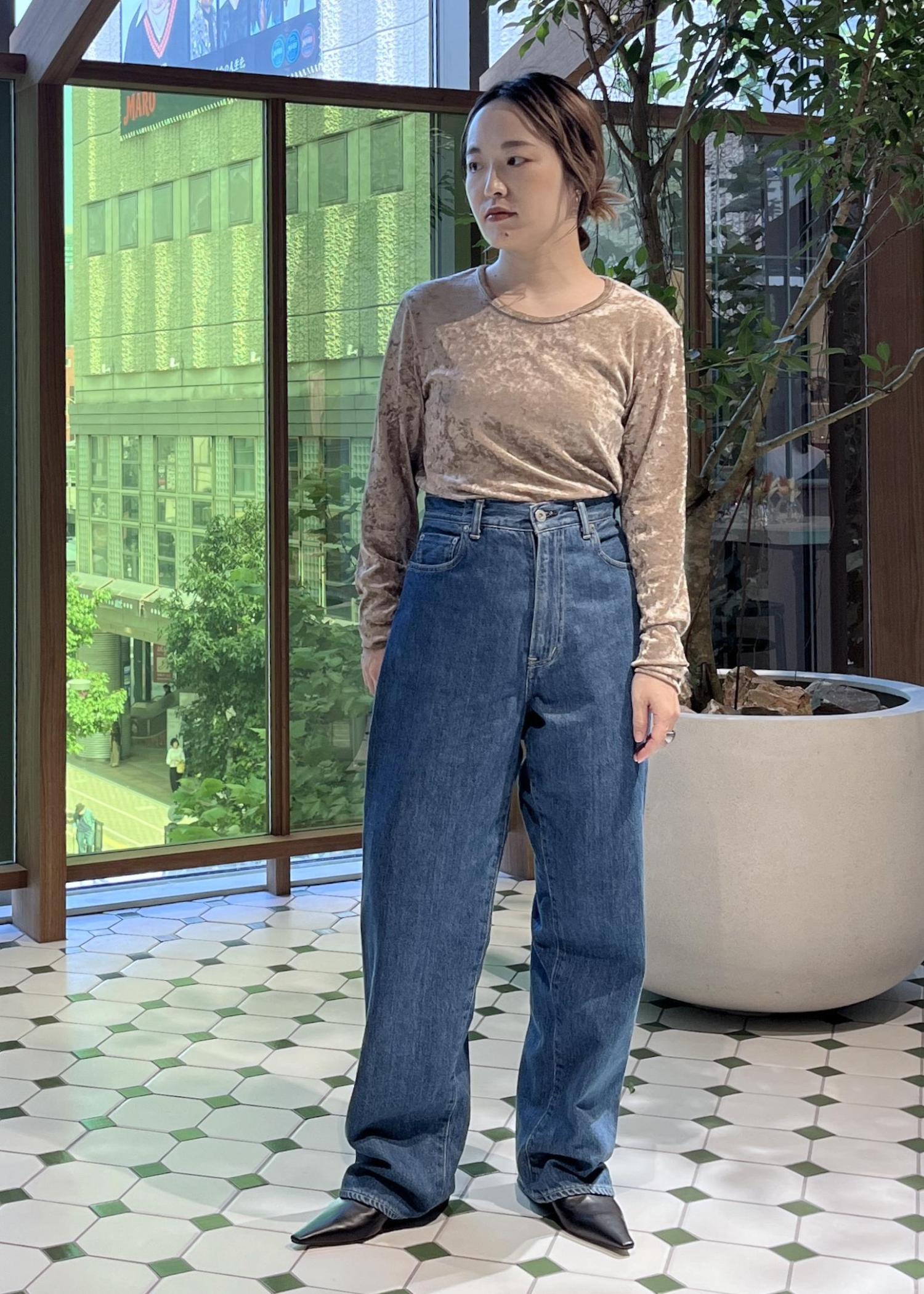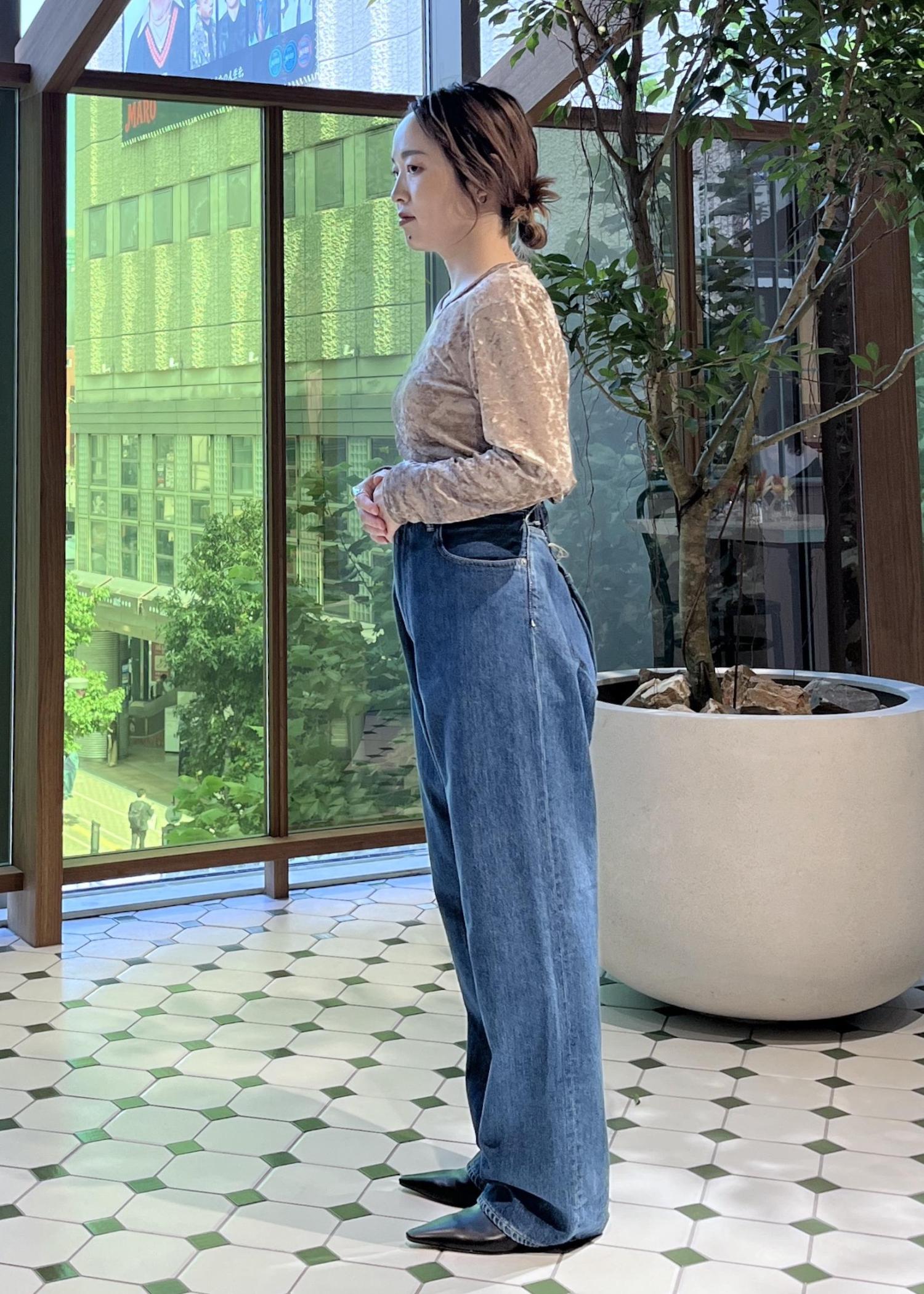 SALON adam et ropé【KURO for SALON(クロ)】別注クロスデニムパンツブルー系 / 25¥29,700レビュー152cm、5cmヒールで床ギリギリくらいです。