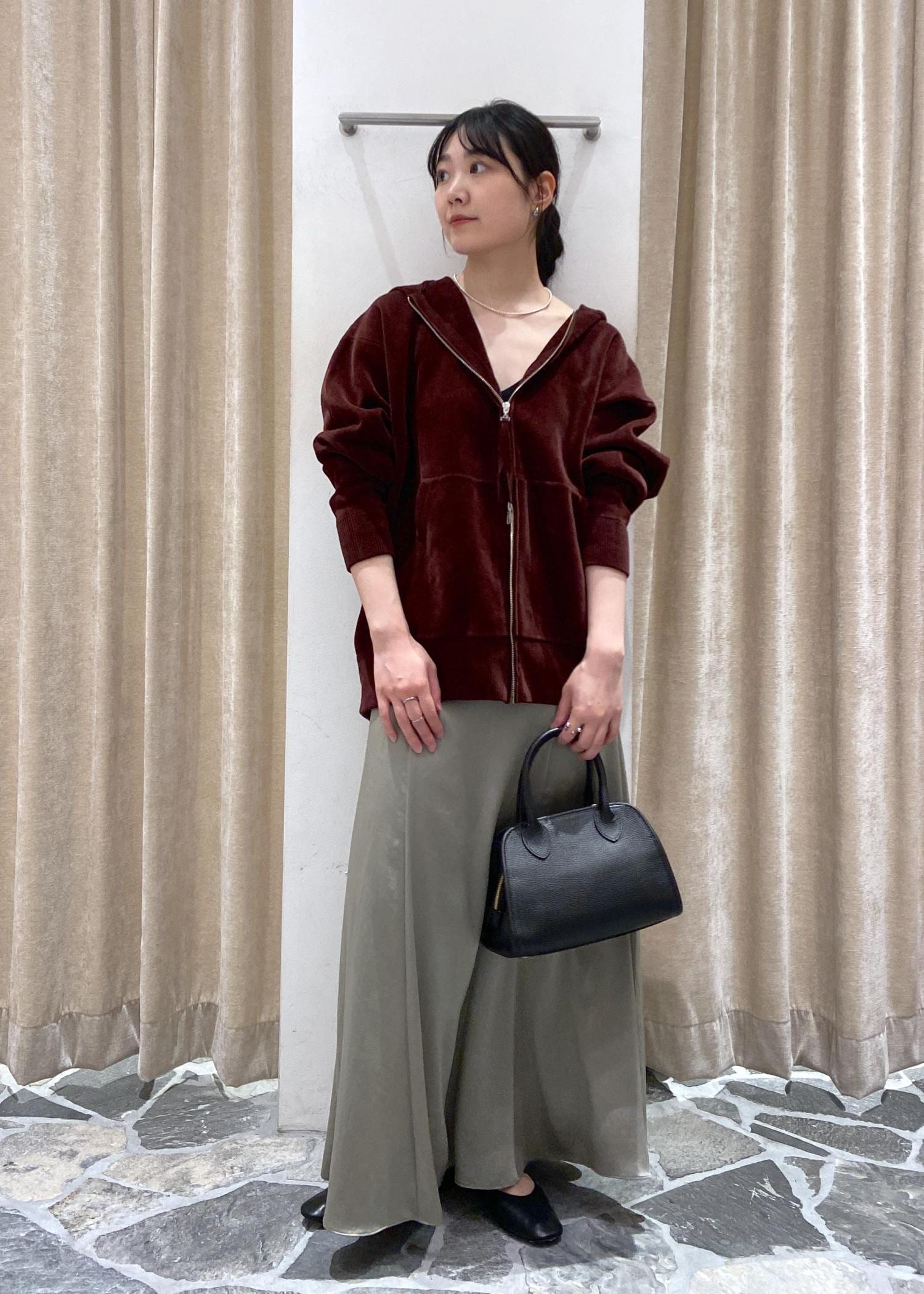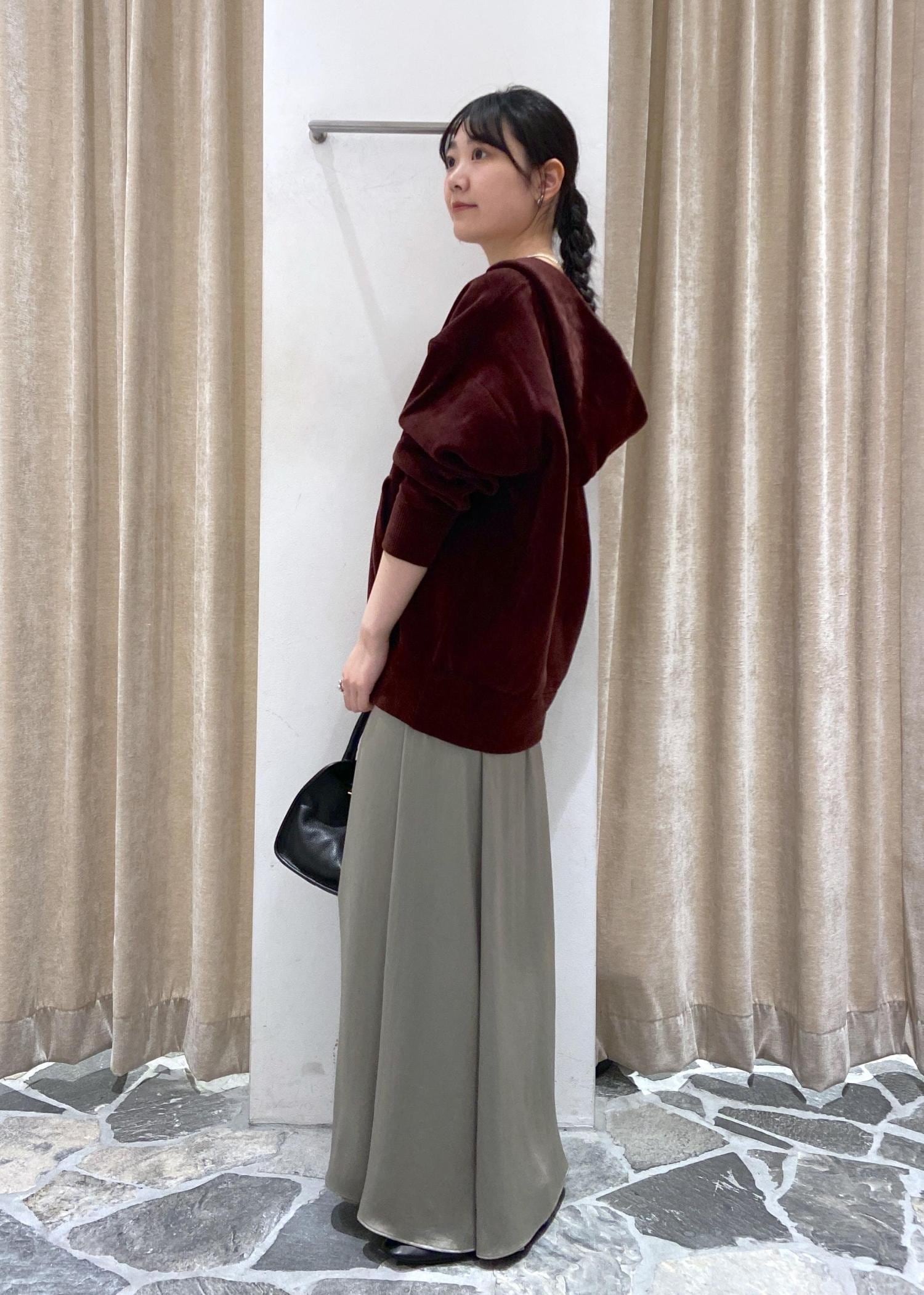オーガニックコットン100%の滑らかでソフトな着心地。ベロアのような素材感なのでカジュアルすぎず、女性らしいアイテムにも合います。