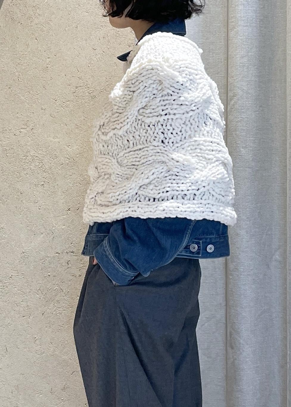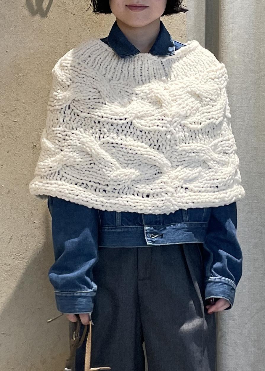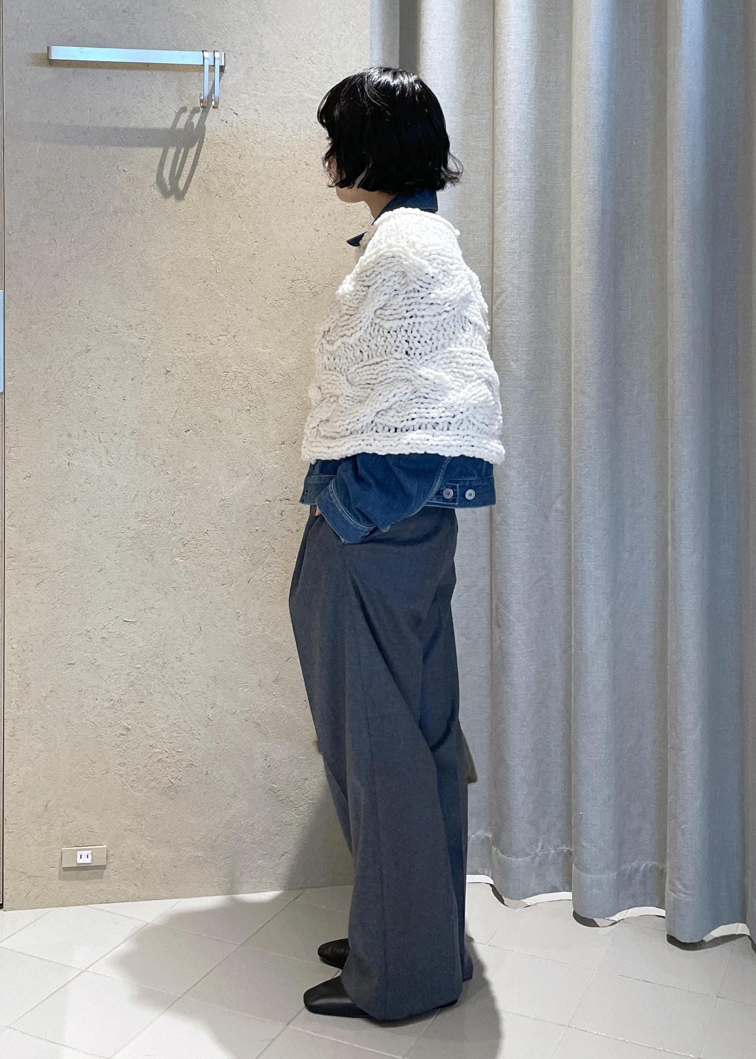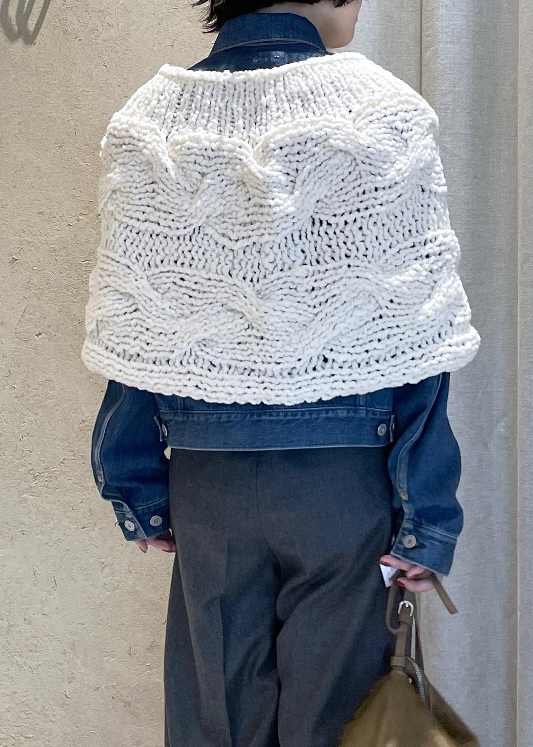 デニムジャケットがカジュアルな雰囲気なのでタックパンツは大人っぽく合わせてみました。このままでもねシンプルでかわいいですが、少しレディな感じも出したかったのでセレクトブランドIRONINGのケープを合わせてみました。こちらのアイテムはトレンチコートやシャツなどにプラスするだけでもこなれ感が出るのでおすすめです◎