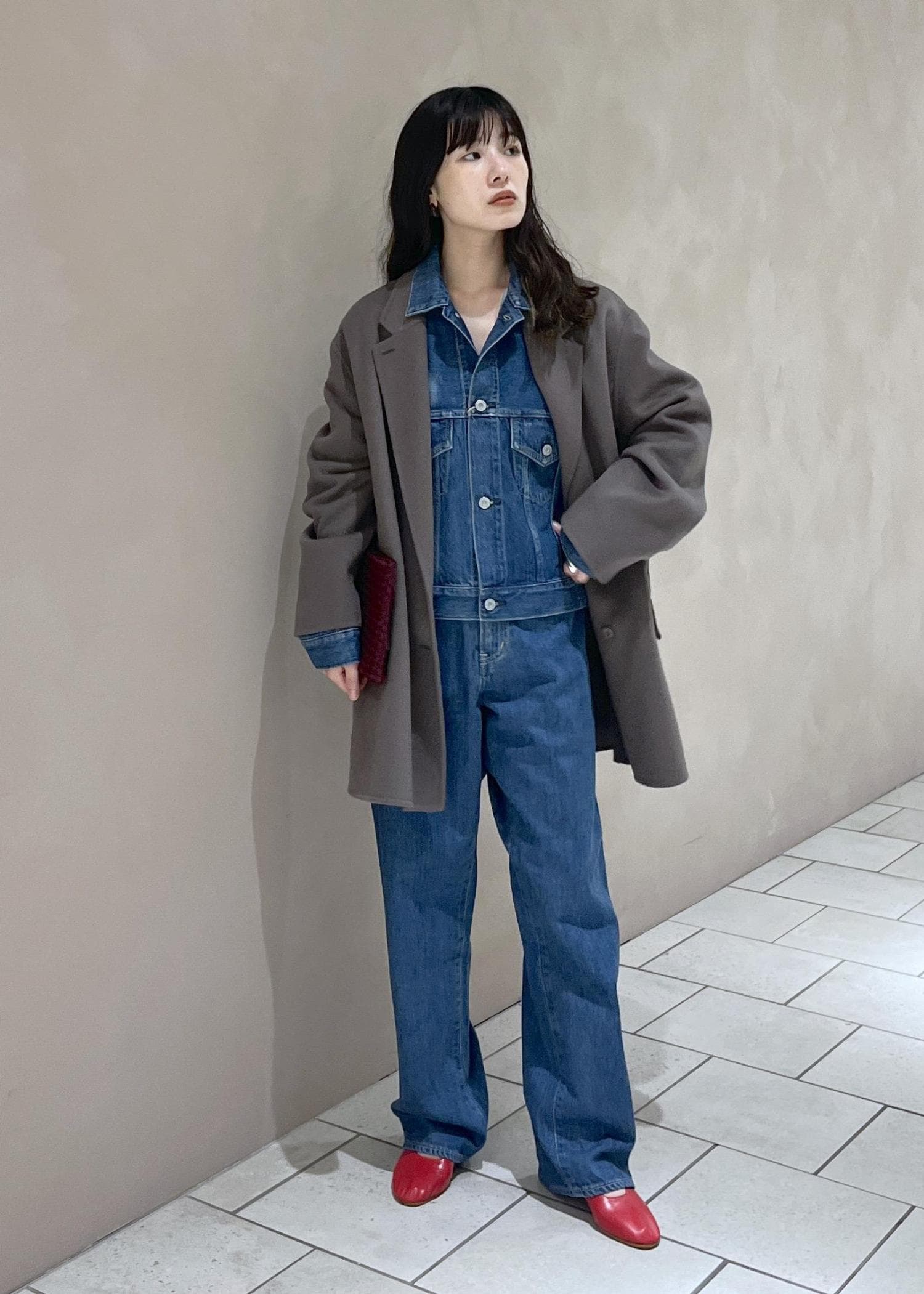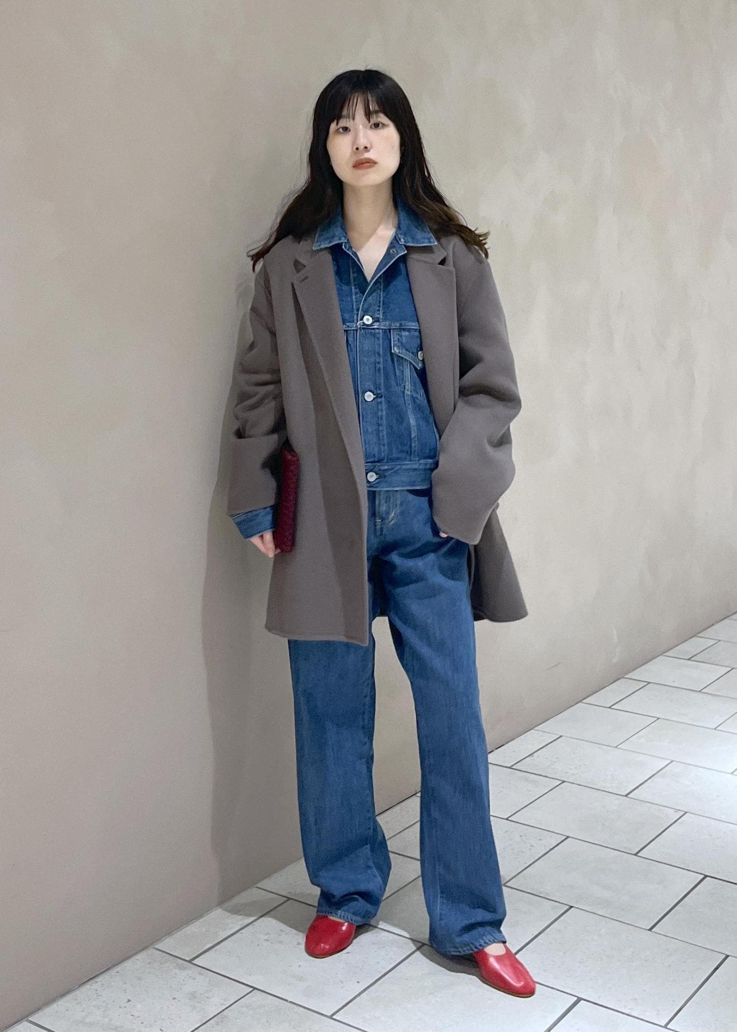 柔らかいデニム地。厚手すぎないのでさっと羽織ったりトップスとしても使えます。もちろんアウターの下でも◎ -