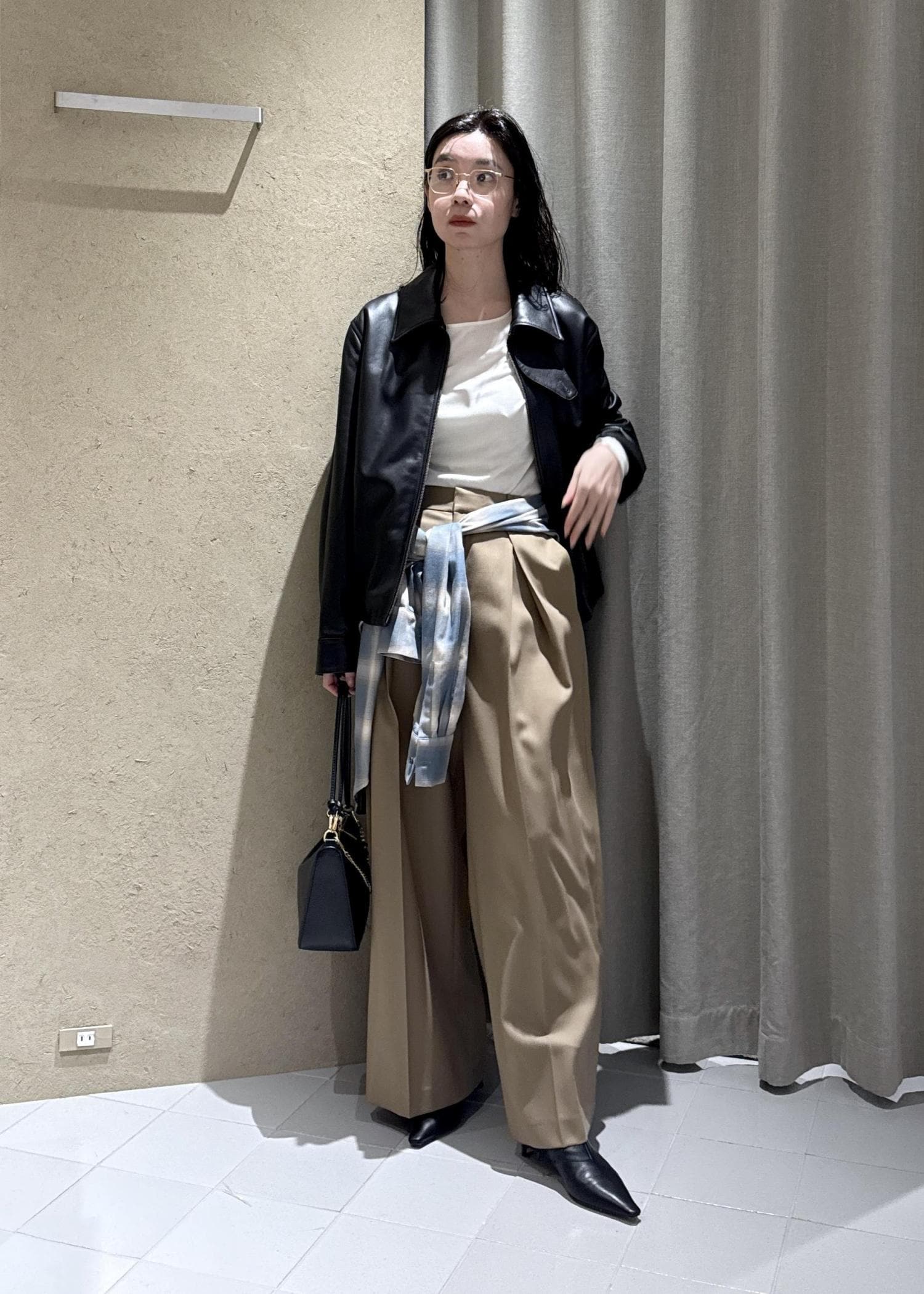 とことんメンズライクなスタイリングが好きな私なので、タックパンツとスタイリング。